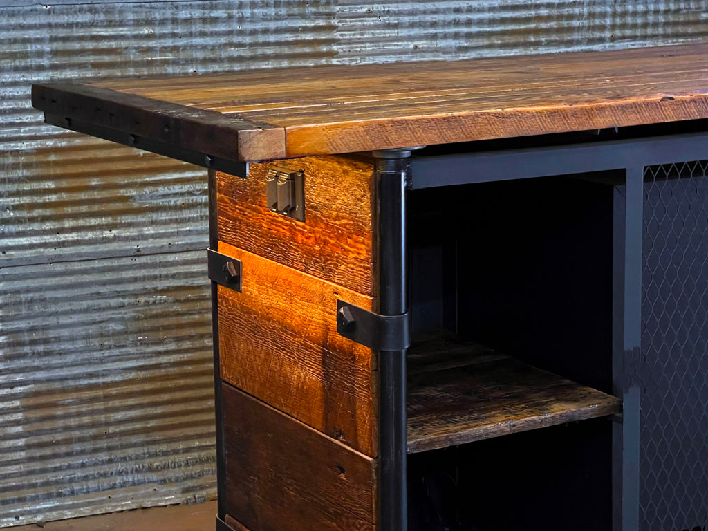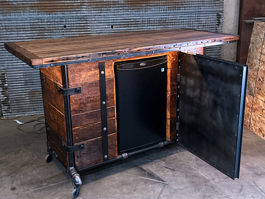 Steampunk Industrial Refrigerator Bar / Barnwood / Hostess Stand / Automotive / Large 8' Table / Carroll Shelby / #3930