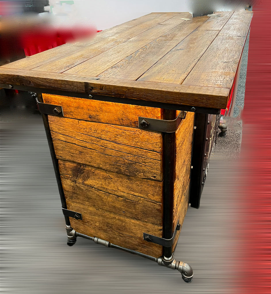Steampunk Industrial Refrigerator Bar / Barnwood / Hostess Stand / Large 8' Table / Carroll Shelby / #3410