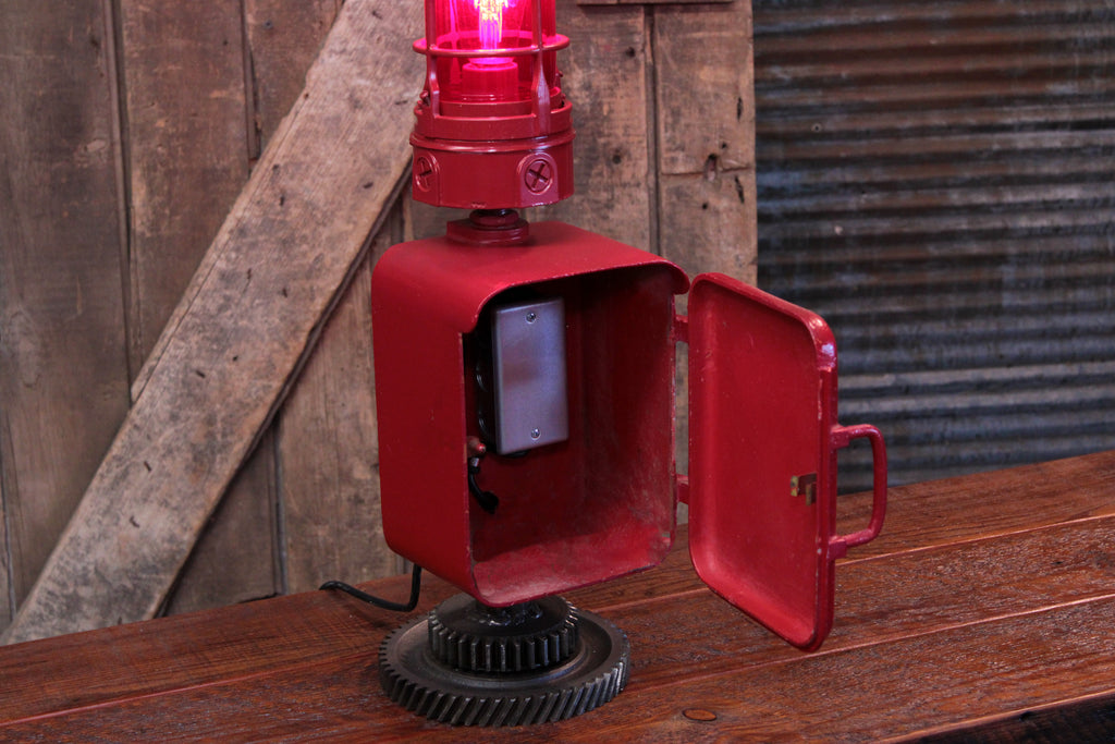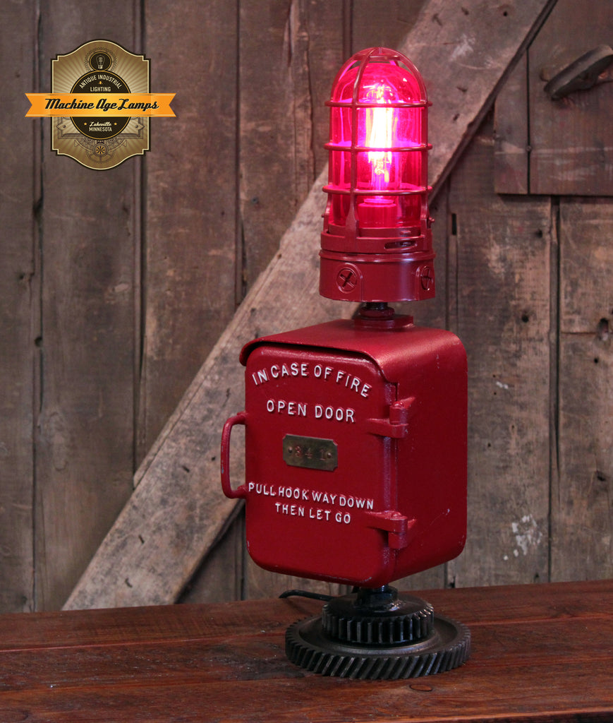 Steampunk Industrial / Antique Fire Alarm Call Box / Fireman / Gear / Lamp #4510