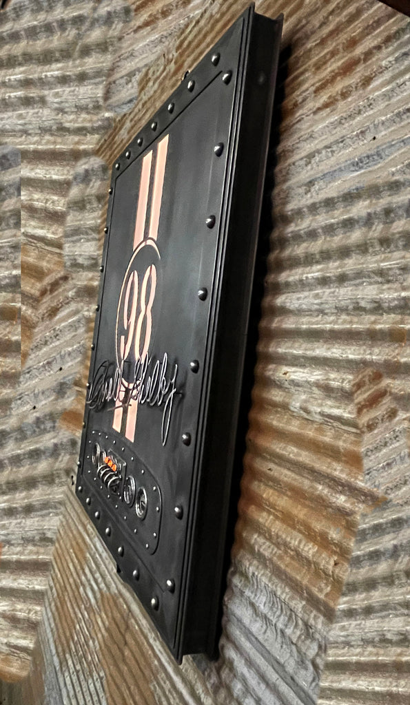 - We laser cut his iconic 98 number and backlit it with led lighting