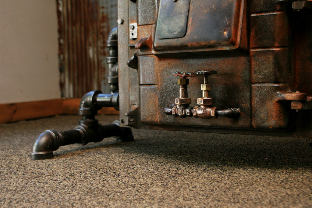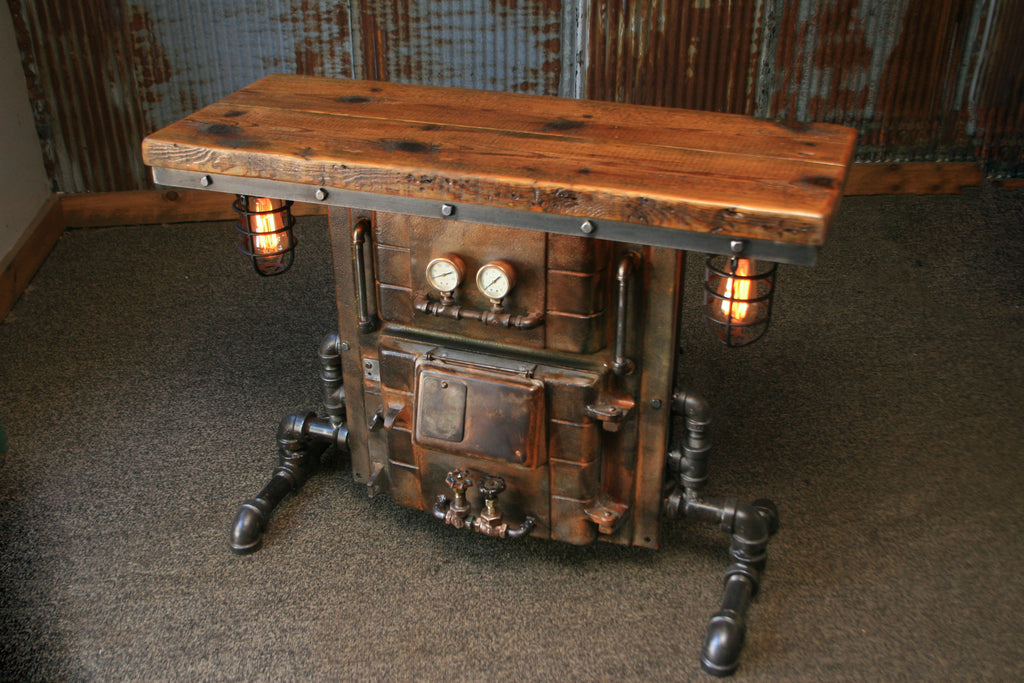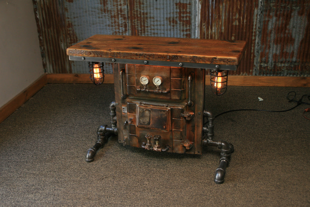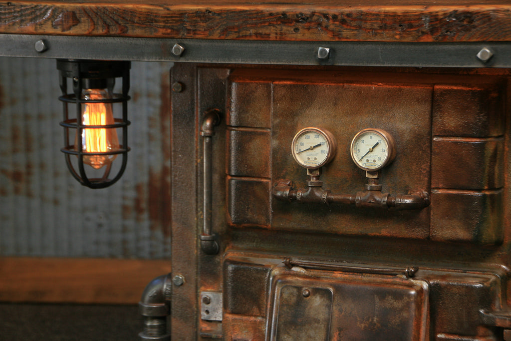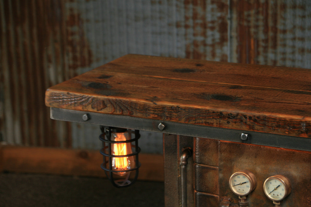 Steampunk Industrial / Antique Boiler Door / Lighting / Barn Wood / Console Hallway Sofa Table / #1542 sold