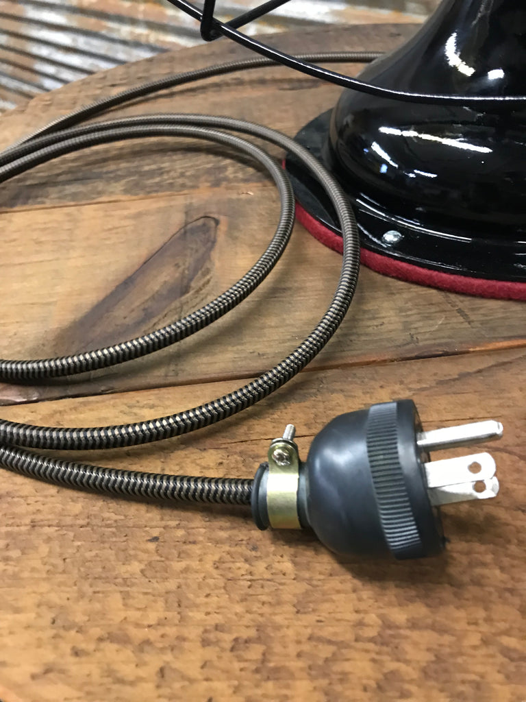 - The lamp cord is a vintage style black and brown hounds tooth cloth covered, with a ground. All surfaces of the lamp are grounded for safety.