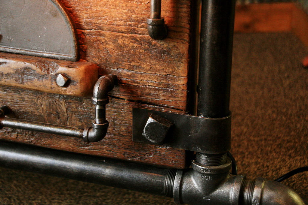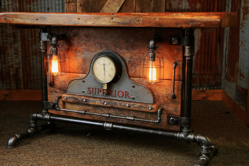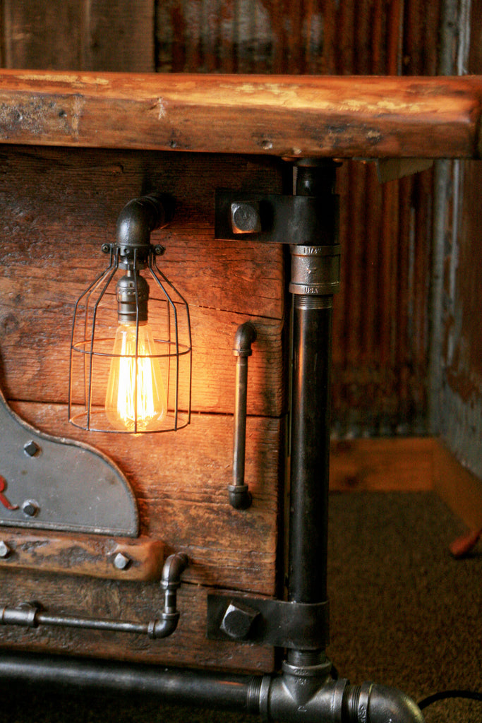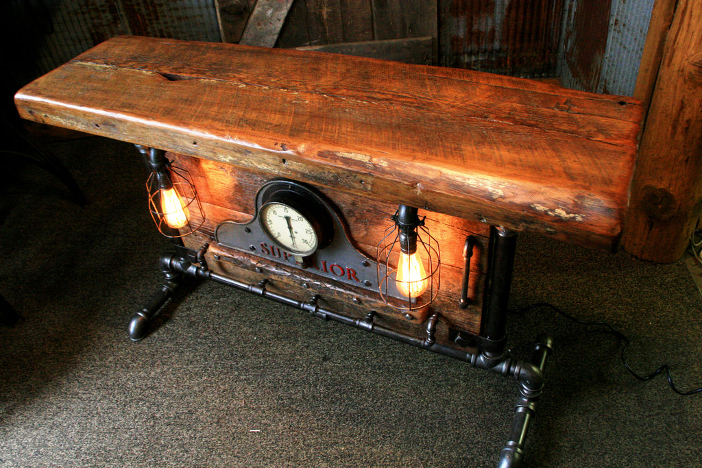 Industrial Antique Steam Gauge Lamp Stand Table, Old Barn Wood Top, #805 - SOLD
