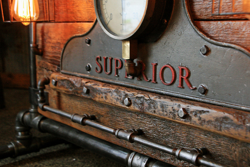 - Amazing antique steam gauge mounted to the original cast iron back.