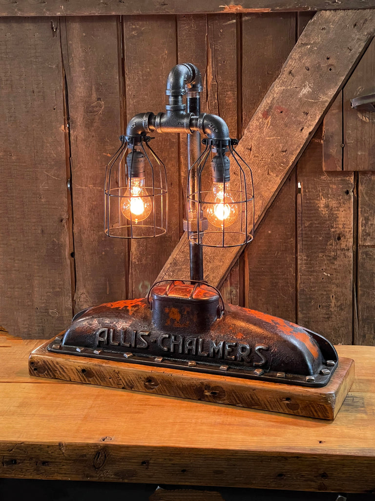 Steampunk Industrial / Allis Chalmers Tractor Radiator / Farm / Barnwood Base Lamp Light #3310 sold