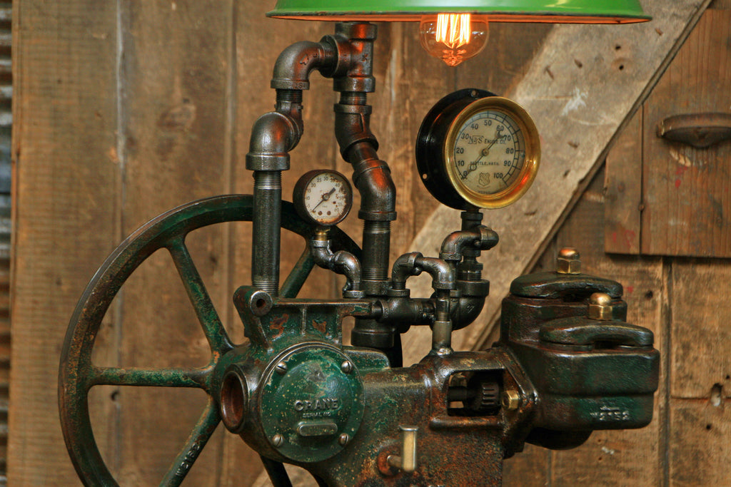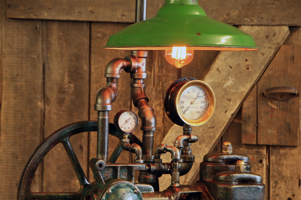Steampunk Industrial / Antique Crane Water Pump / Light / Lamp / Barnwood / Green Shade / #1644 sold