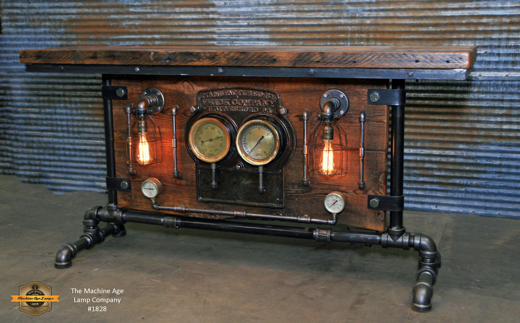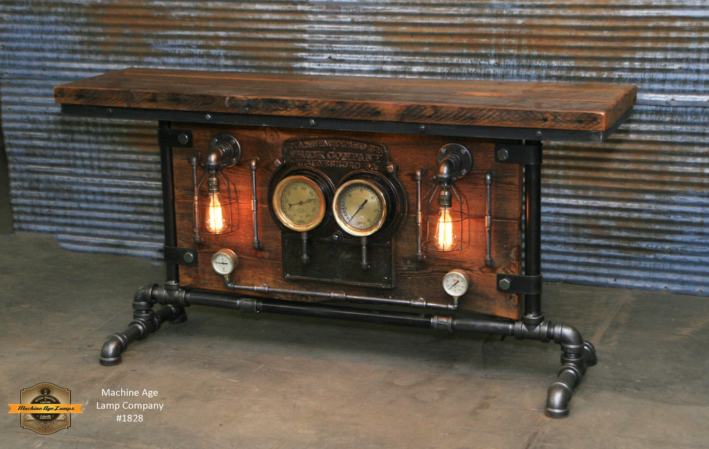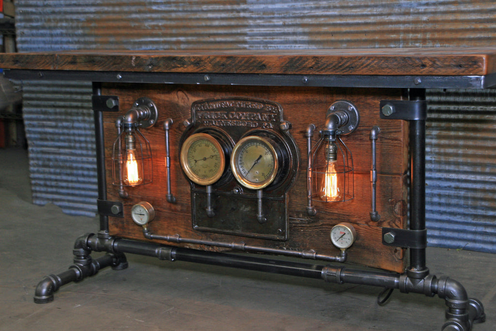 Steampunk Industrial, Barn wood and Iron Frick Co Steam Gauge Table, #1828 sold