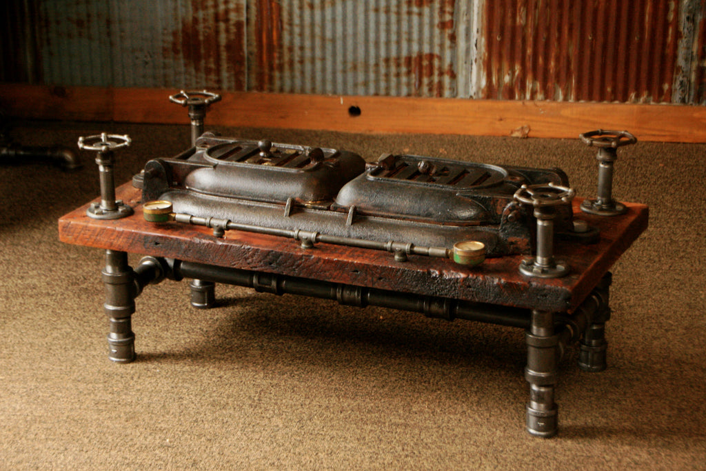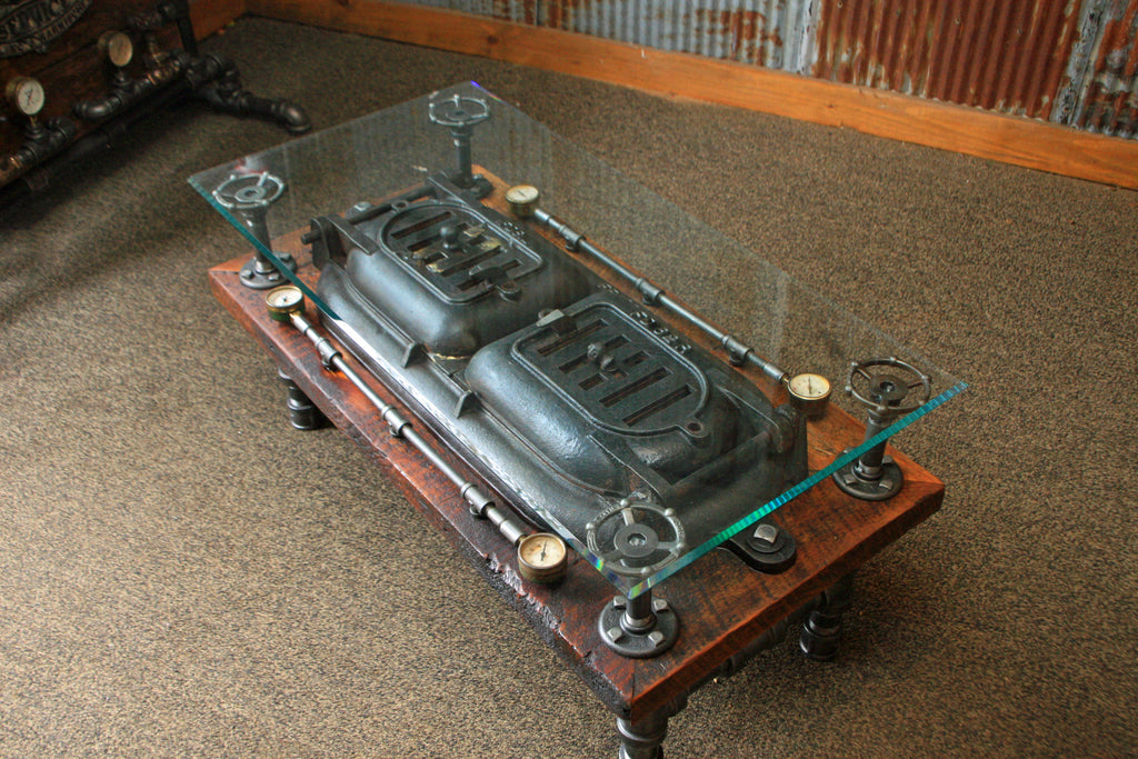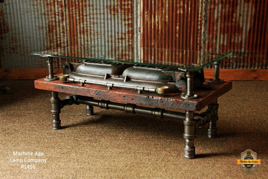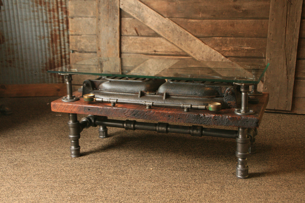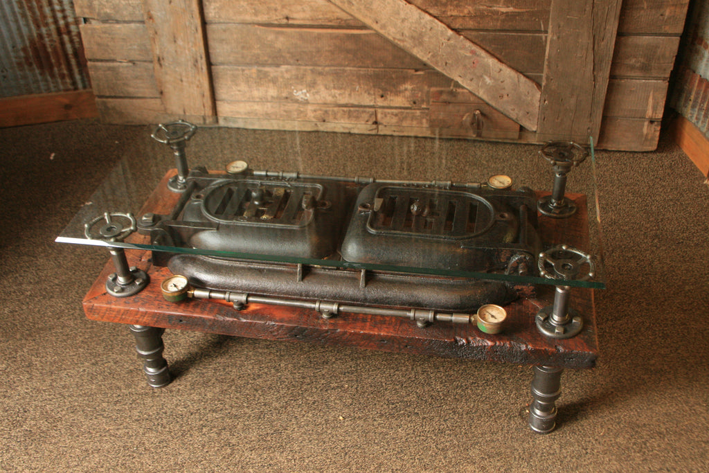 Steampunk Antique Industrial / Coffee Table / Barn Wood / Boiler Door #1496 - SOLD