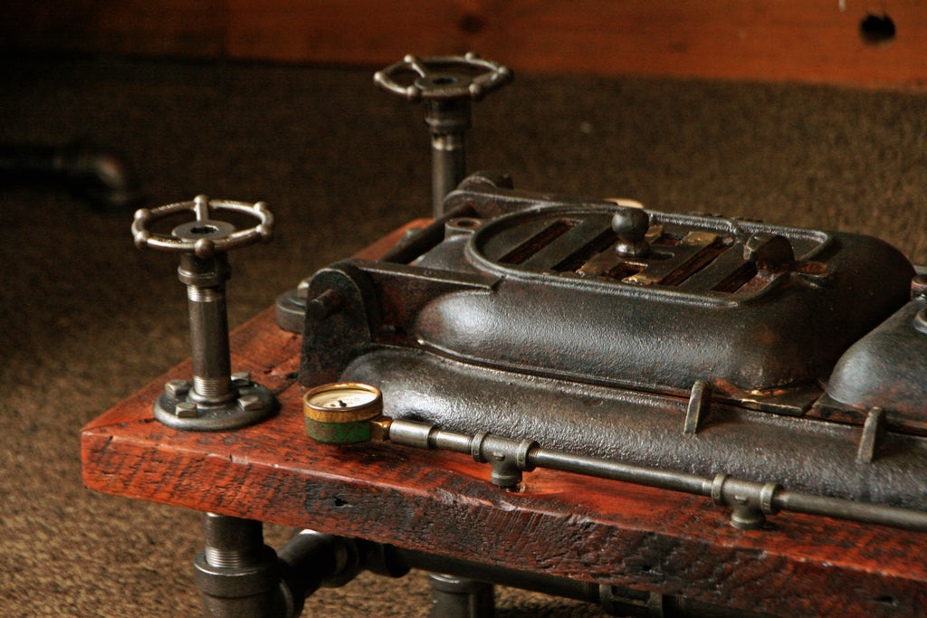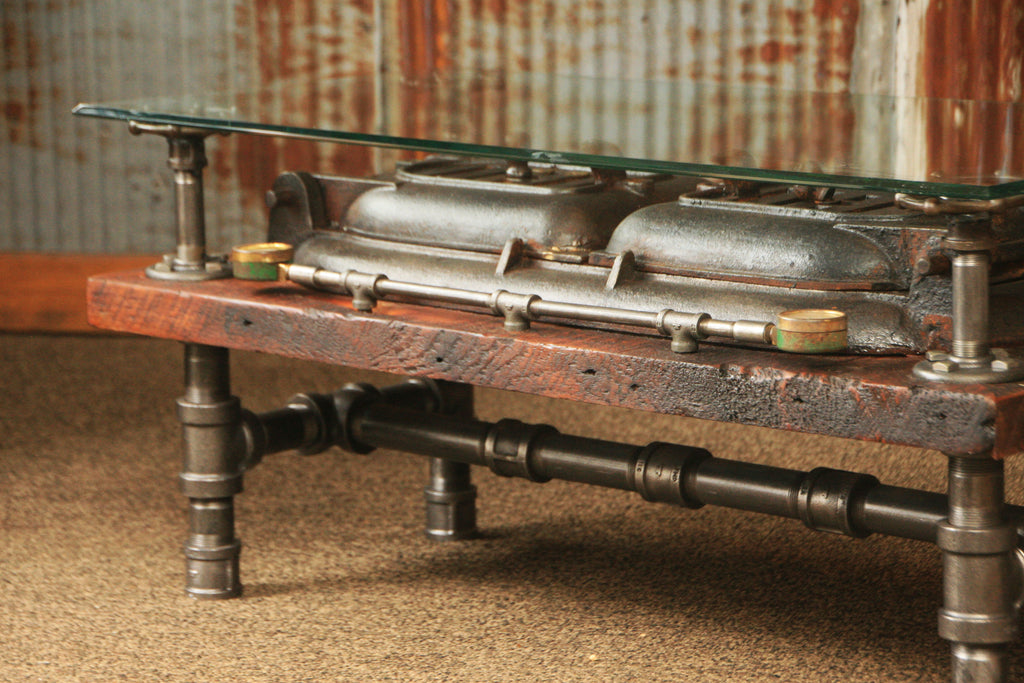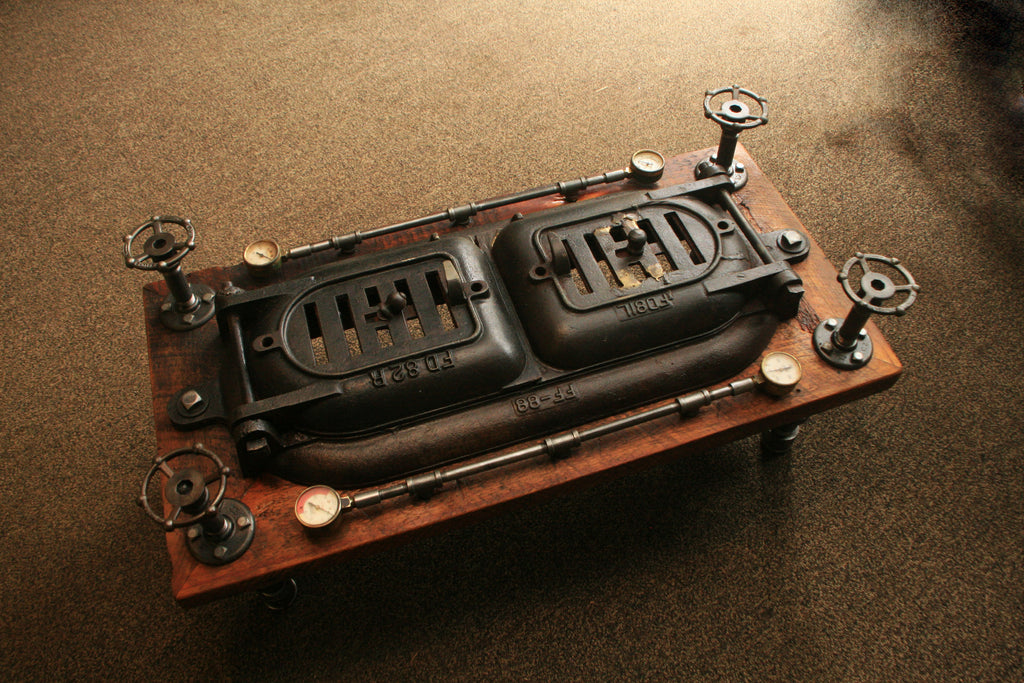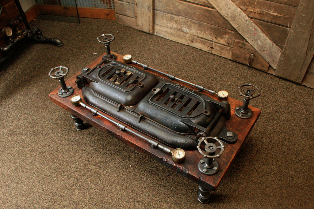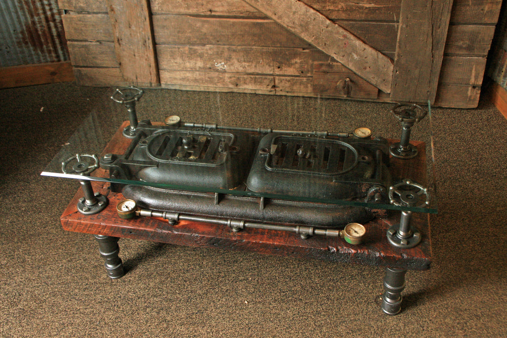 Steampunk Antique Industrial / Coffee Table / Barn Wood / Boiler Door #1496 - SOLD