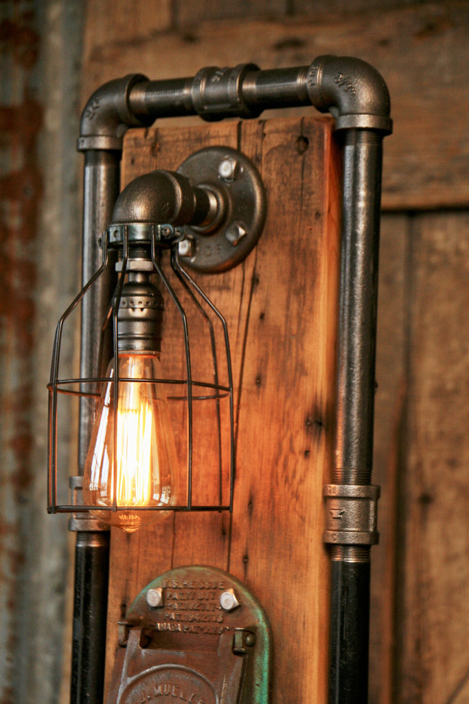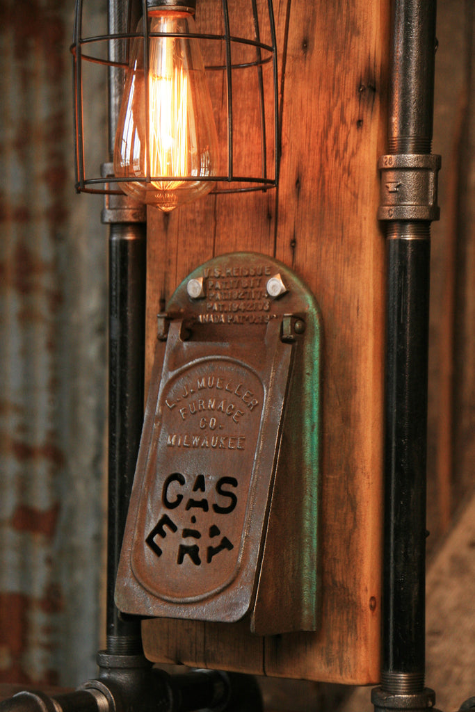 Steampunk Industrial Lamp / Barn Wood / Stove Door / Milwaukee / #1240 sold