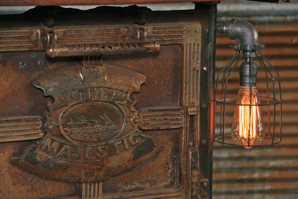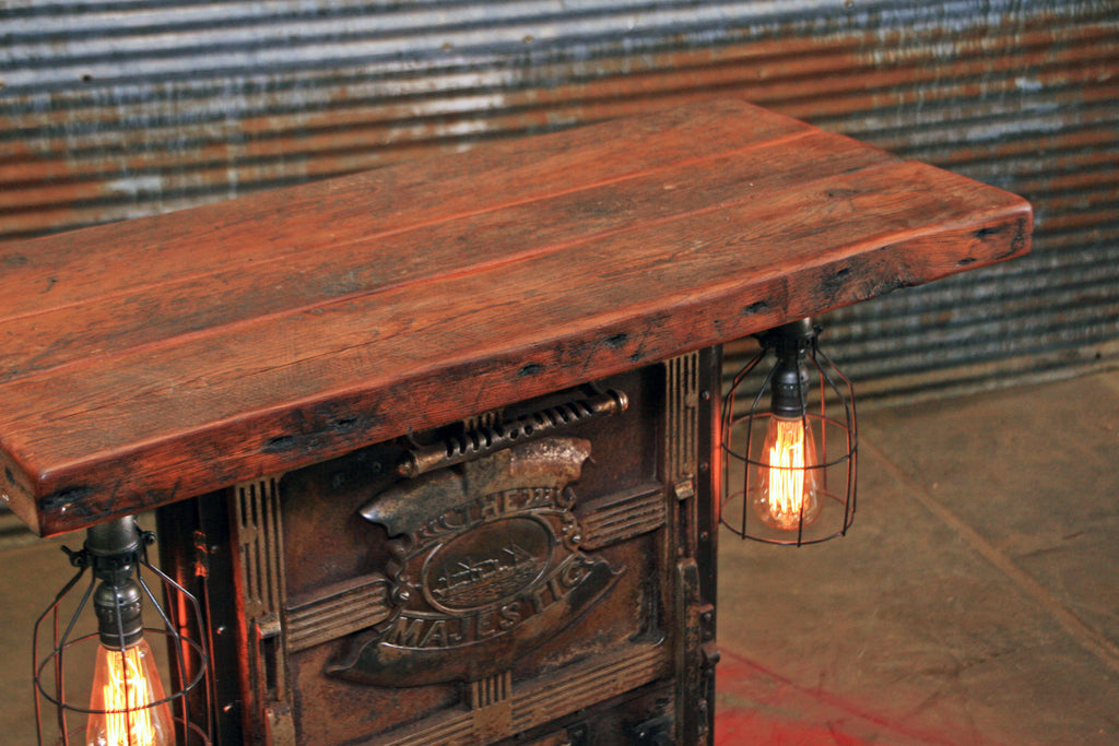 Steampunk Industrial / Stove Boiler Door Table / Console / Steam Gauge / Barn wood / #1607 sold