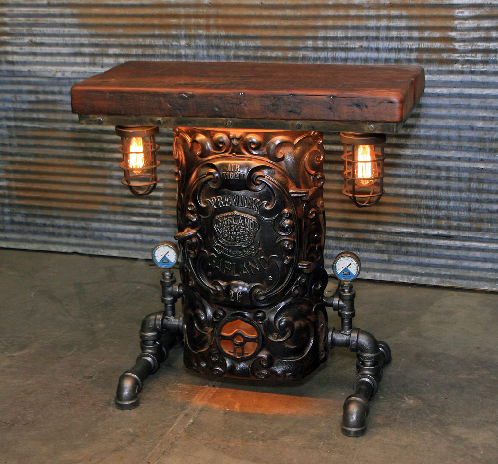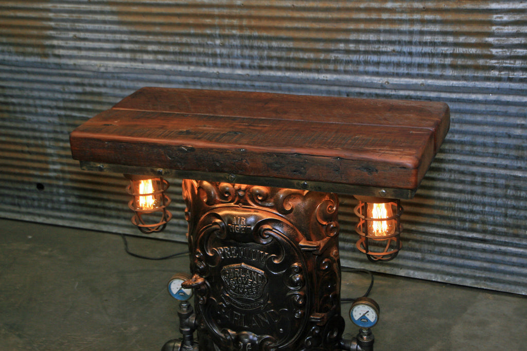 Steampunk Industrial Table / Anitque Boiler Door / Barnwood / Steam Gauge / Table 2308 sold