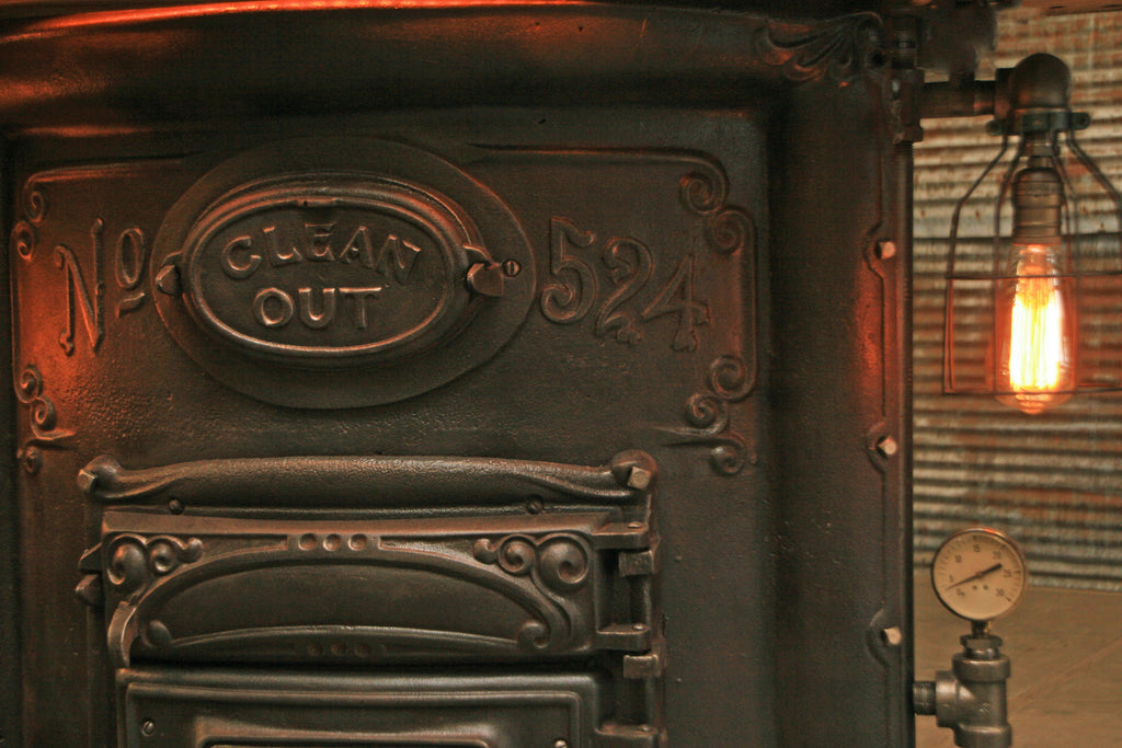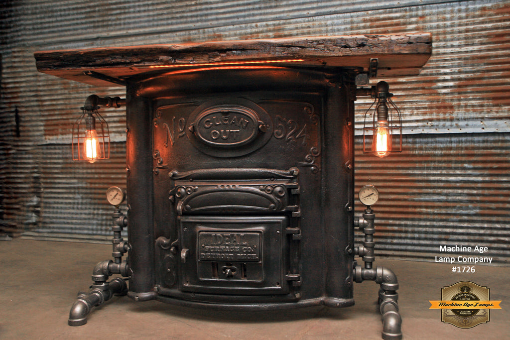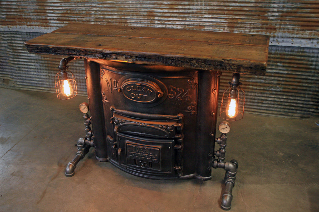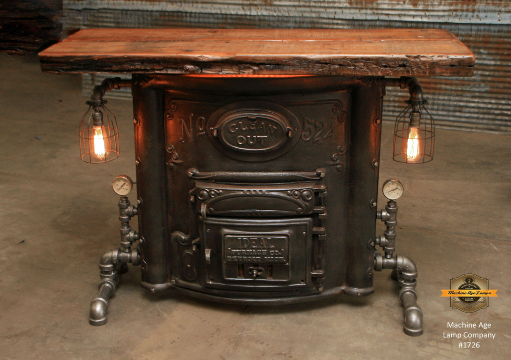 Steampunk Industrial Table / Antique Ideal Furnace Boiler / Barn wood / Console Hallway / Table #1726 sold