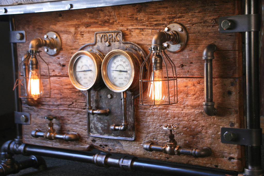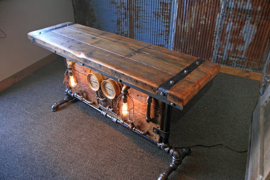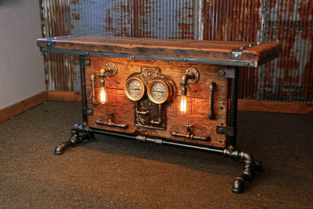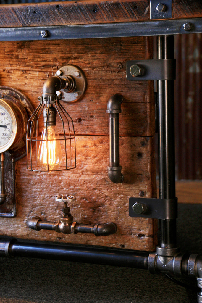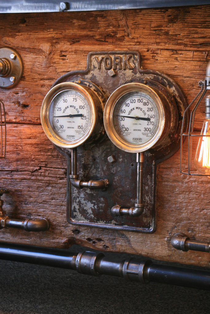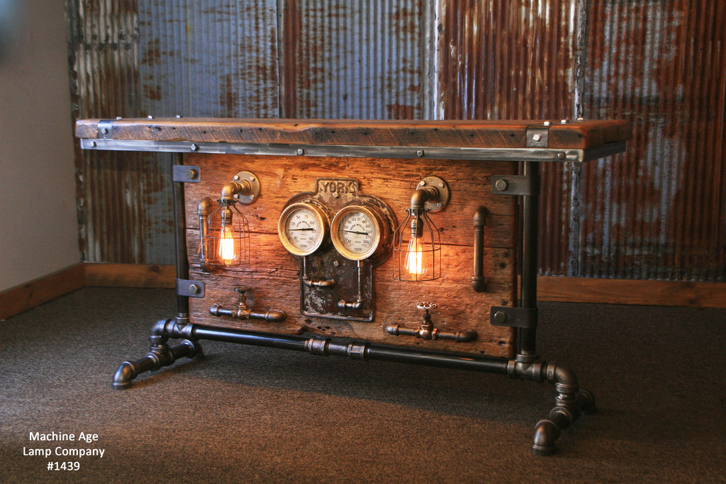 Steampunk Industrial / Table / Barn wood / Steam Gauge / York #1439 - SOLD