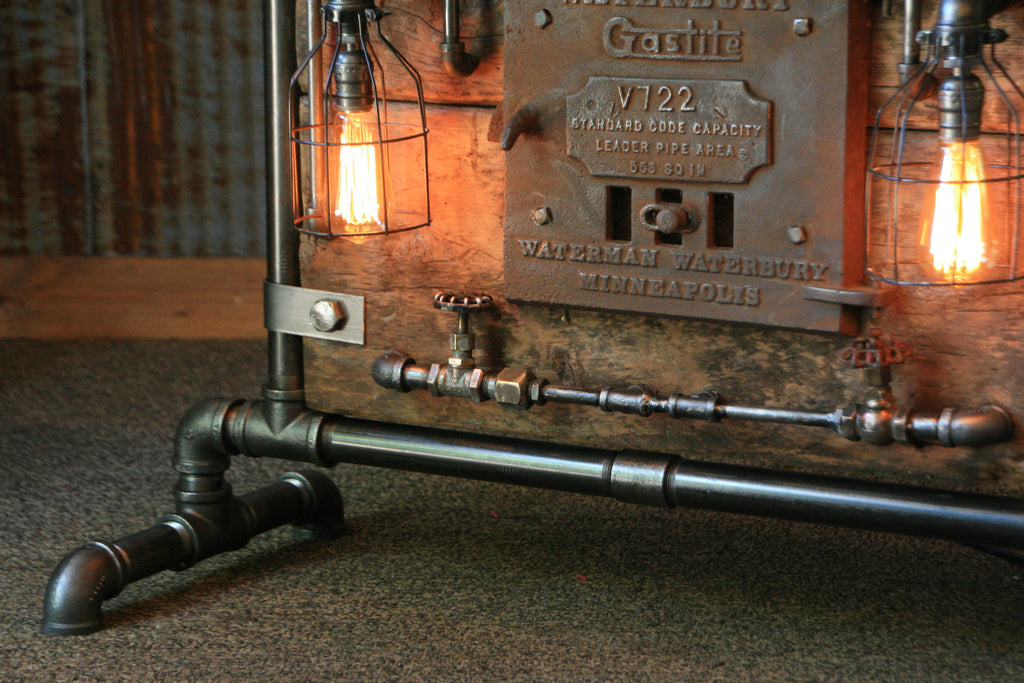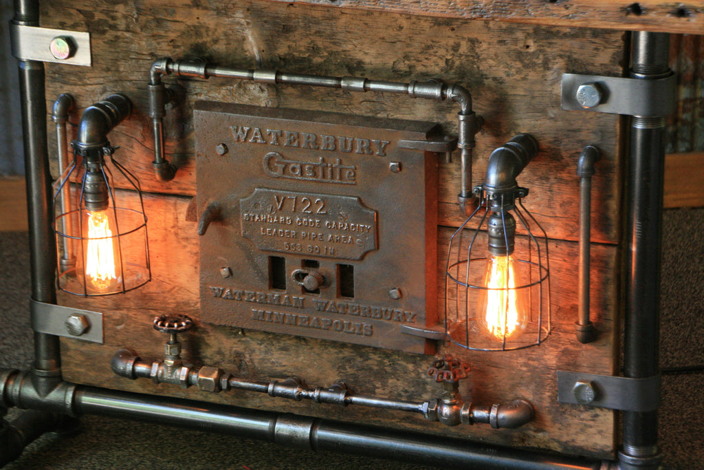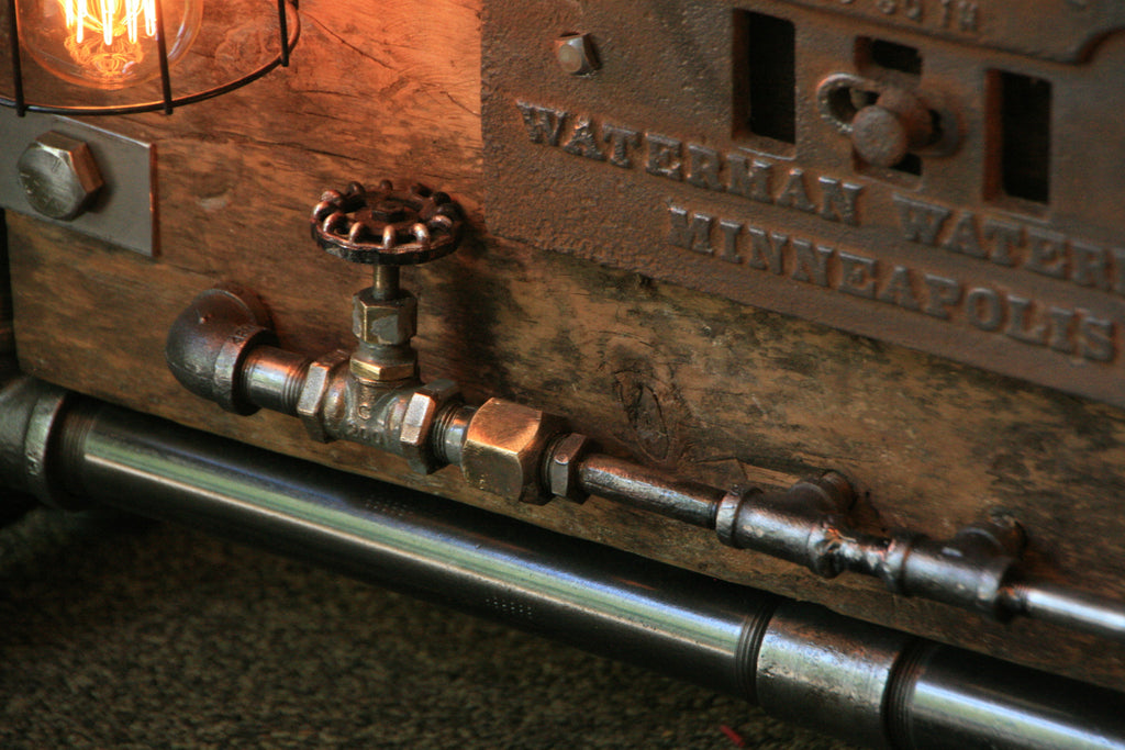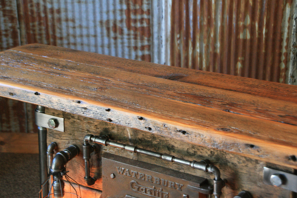 Steampunk Industrial Table, Lamp Stand, Console, Barn wood & Furnace Door - #882 - SOLD