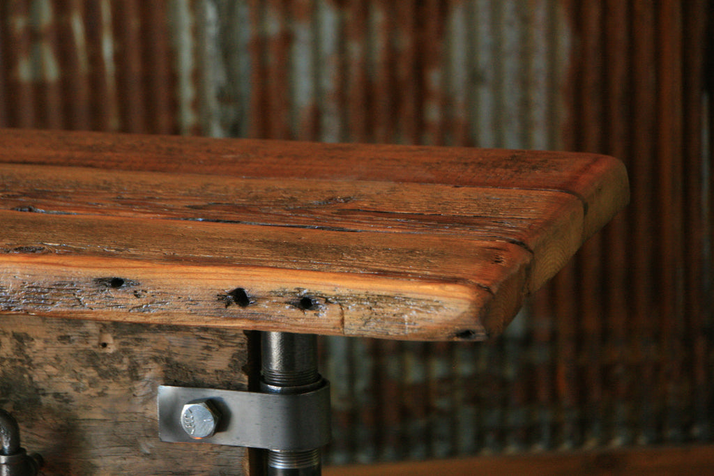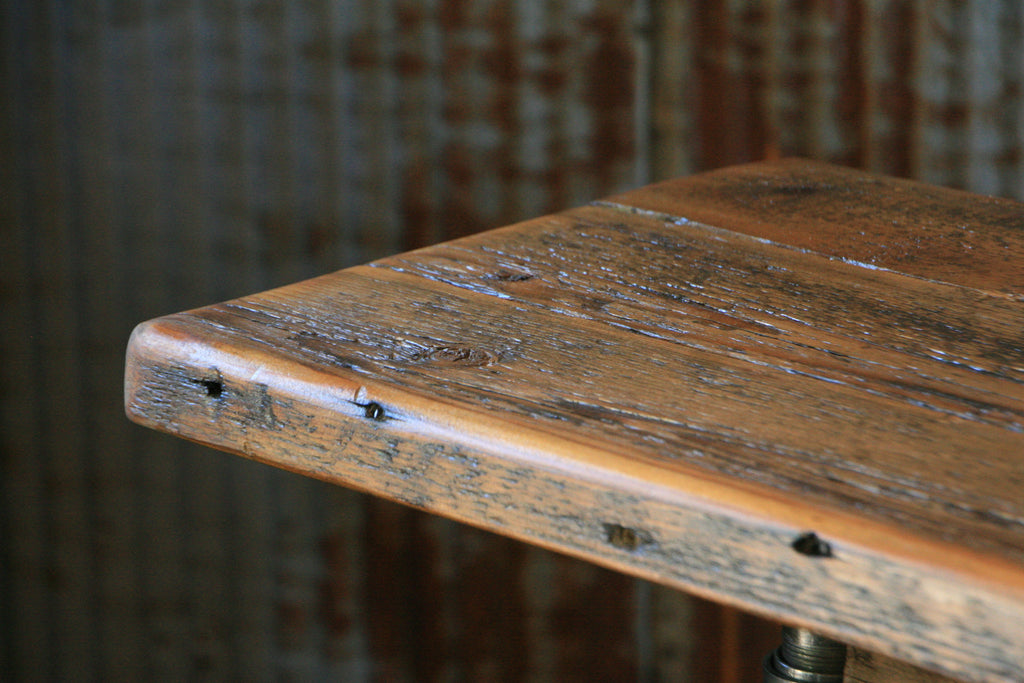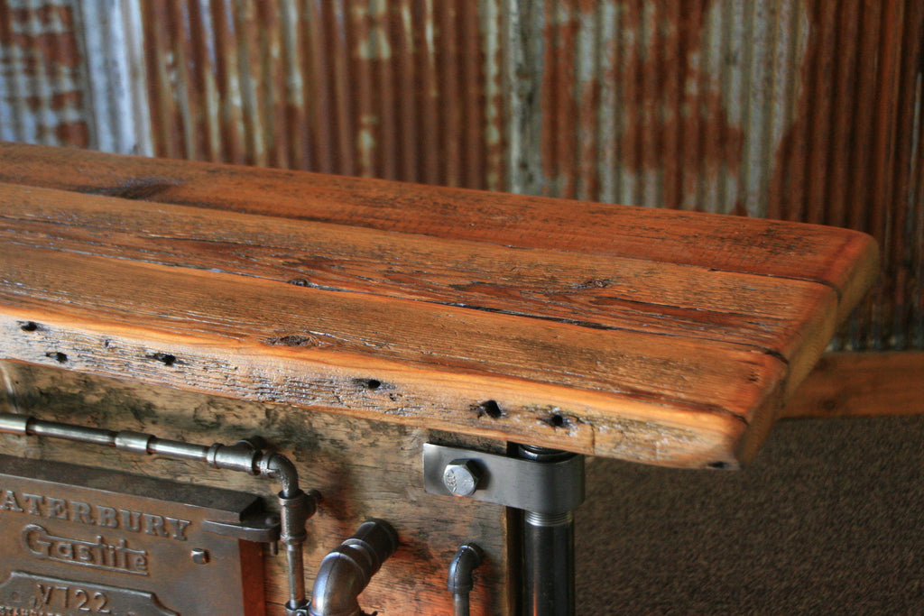 - Antique Minnesota barn wood top measures 50" wide by 16" deep