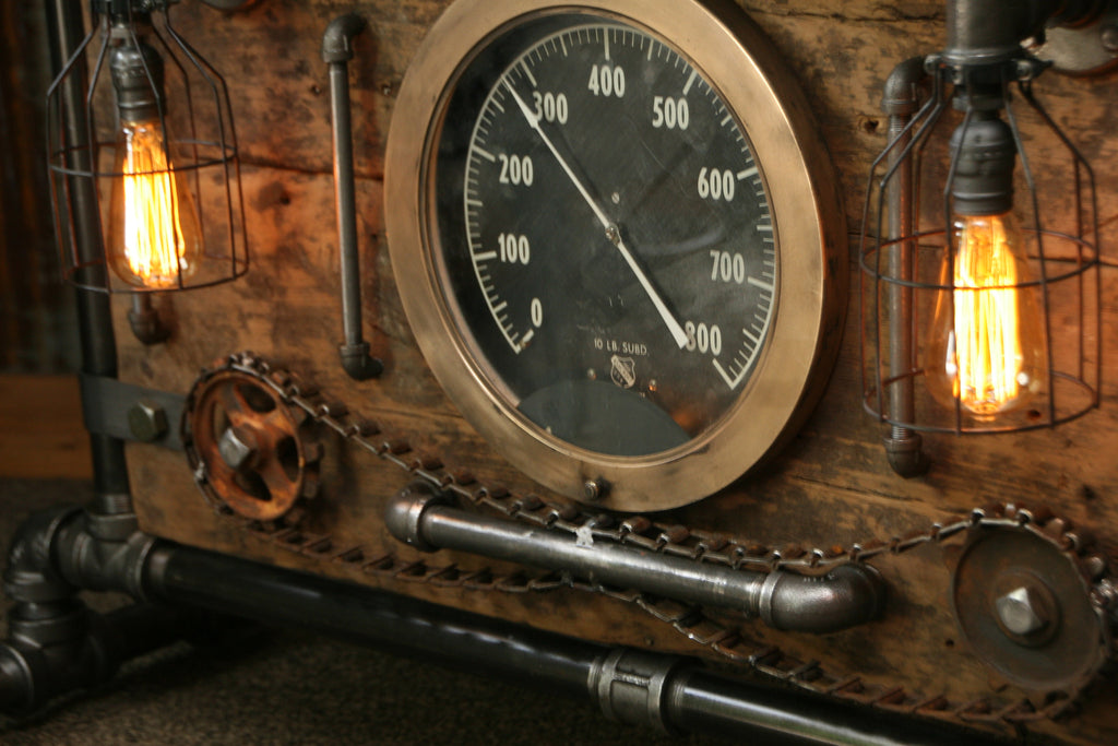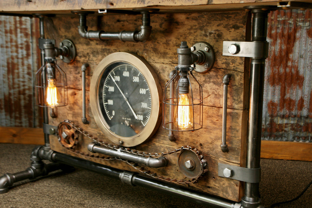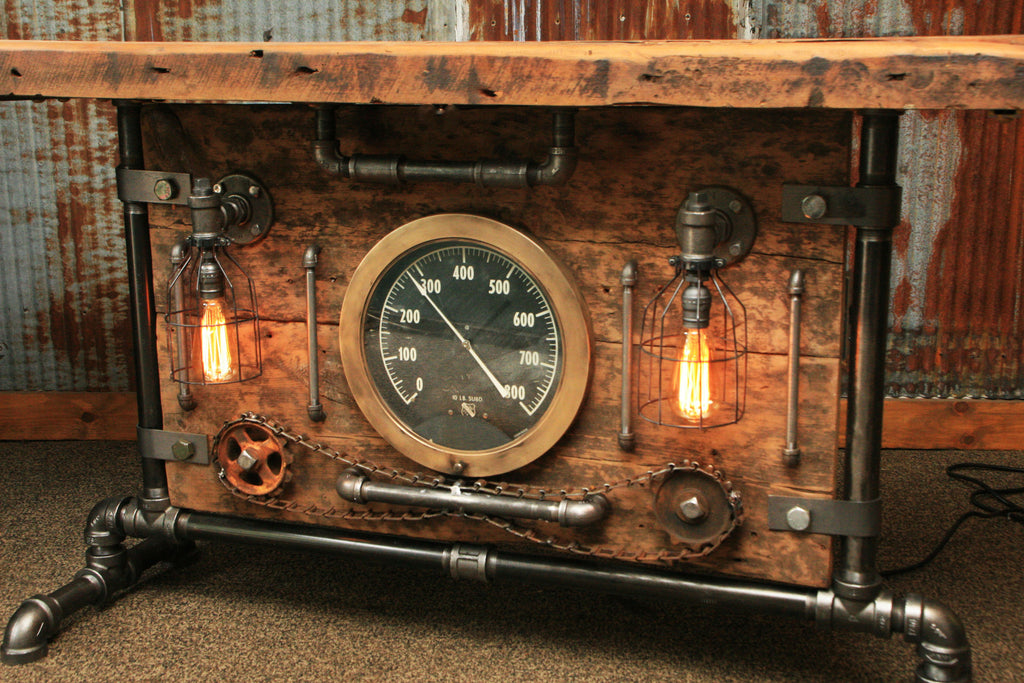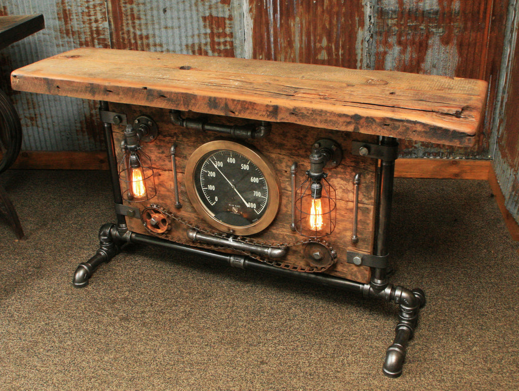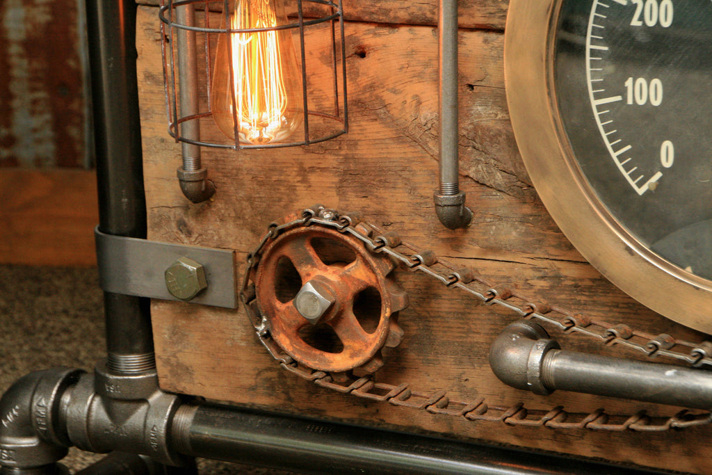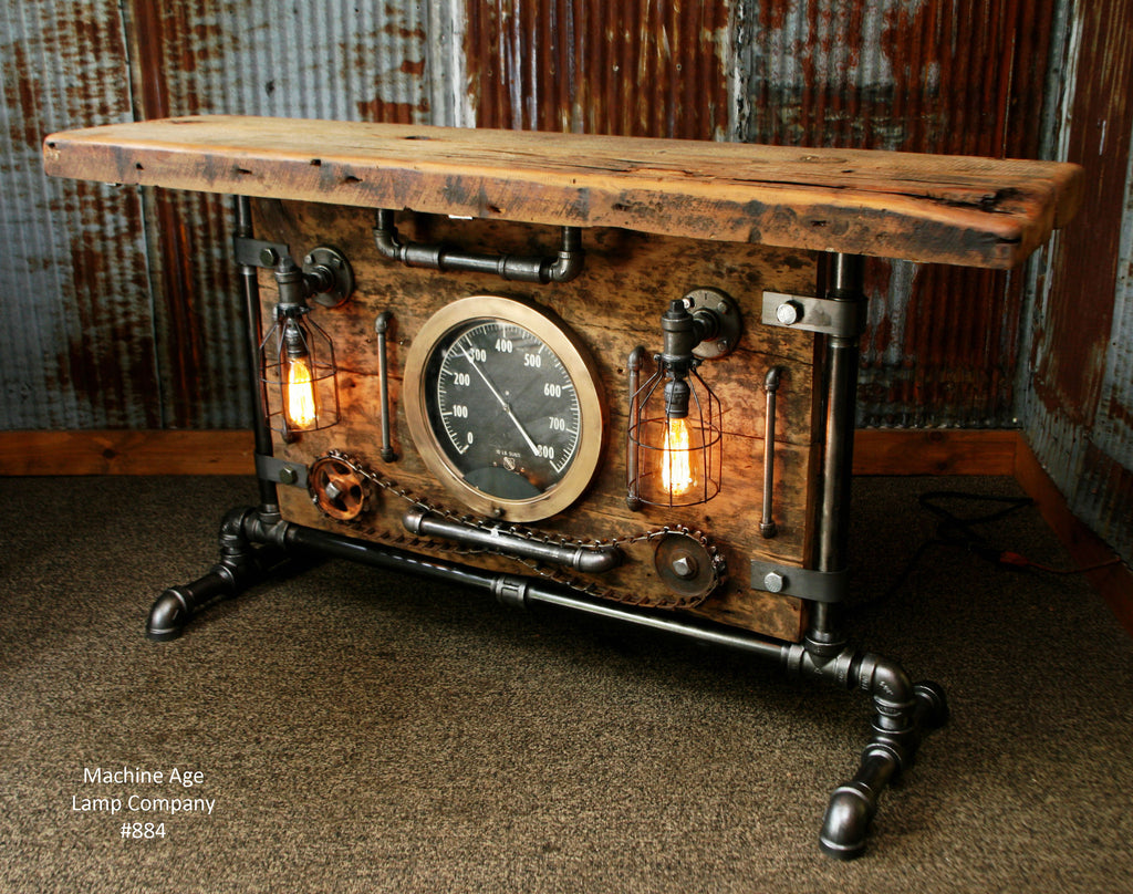 Steampunk Industrial Table, Lamp Stand, Console, Barn wood & Steam Gauge - #884 - Sold