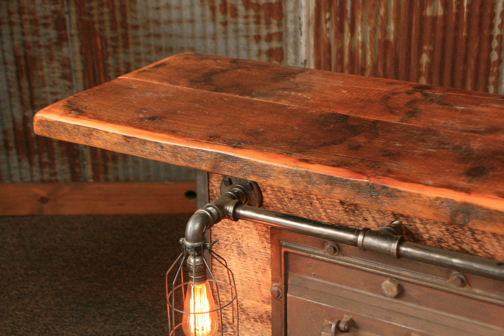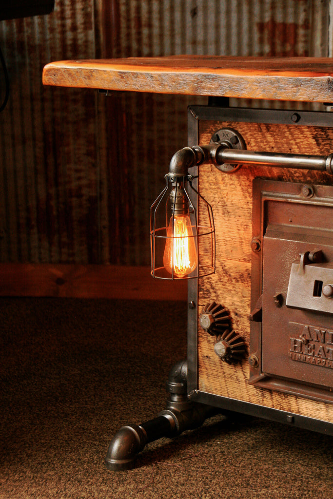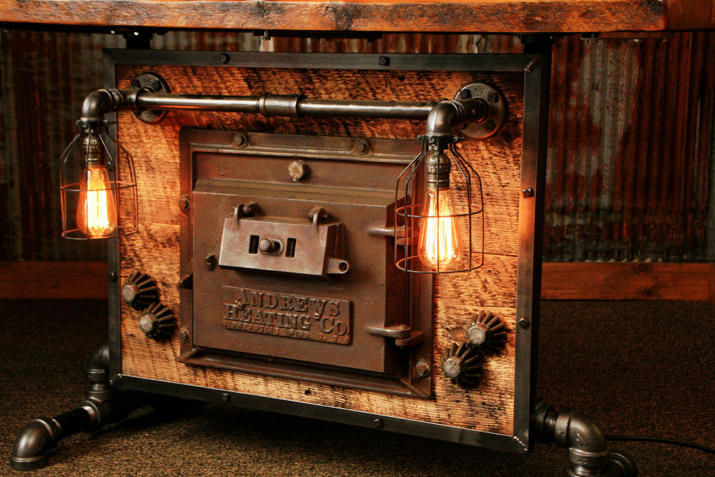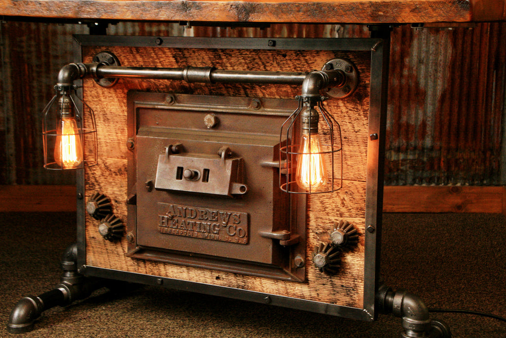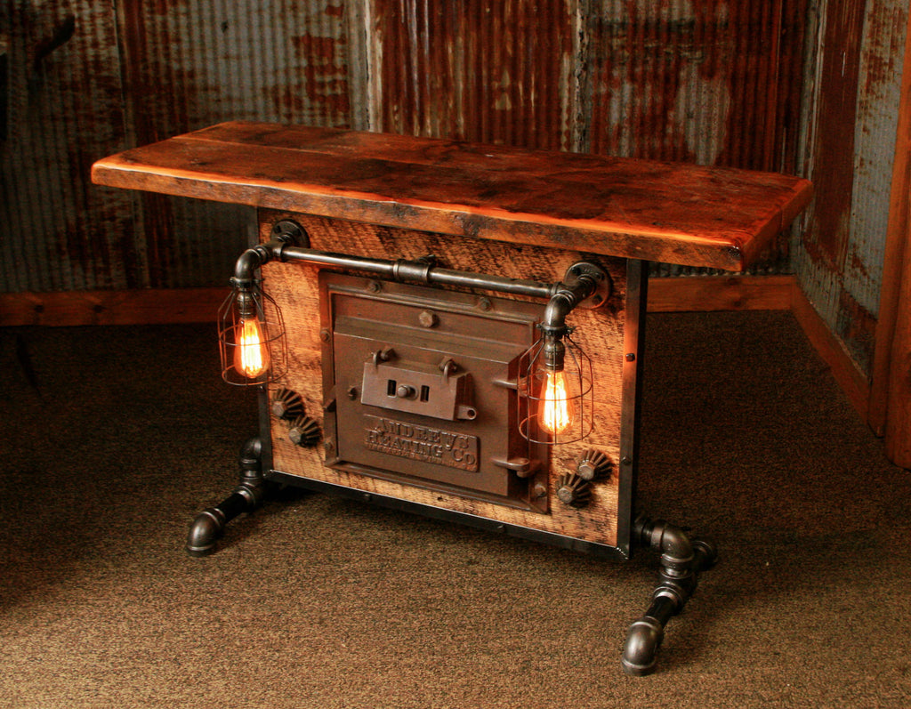 Steampunk Industrial Table or Lamp Stand, Antique Stove Door and Barn wood - #807 - SOLD