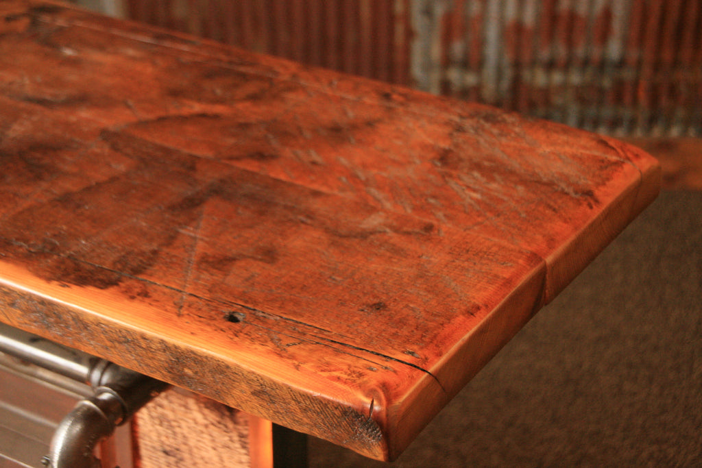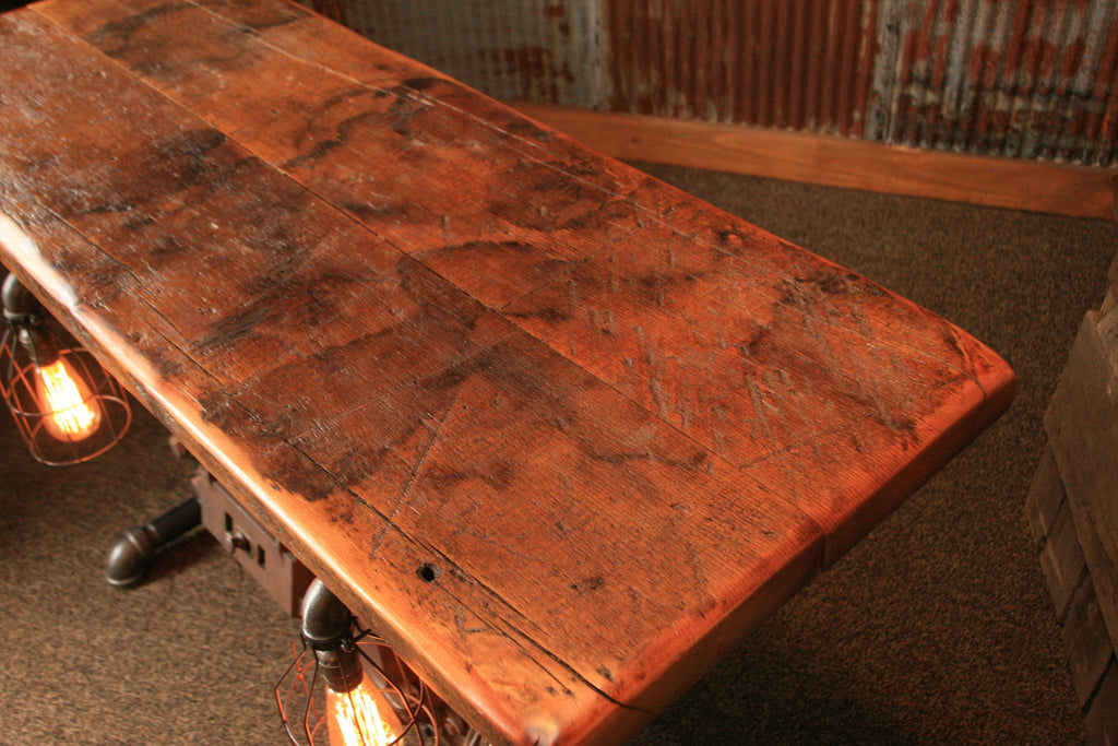 - Antique Minnesota barn wood top measures 53" wide by 16" deep