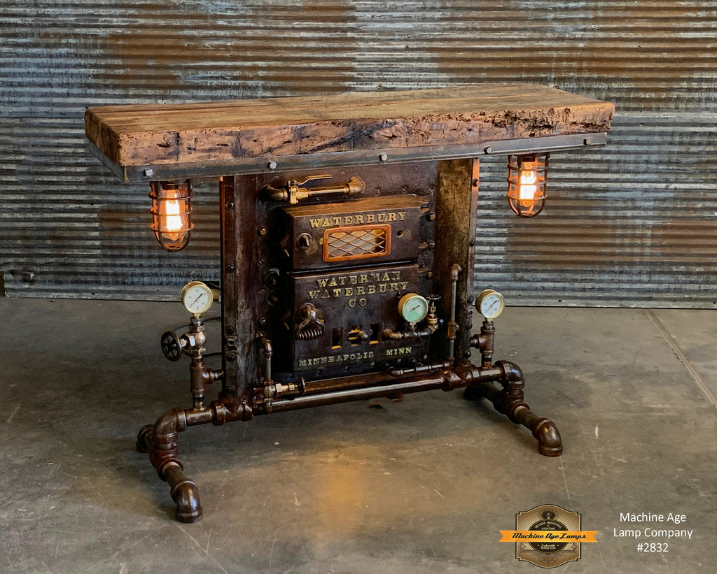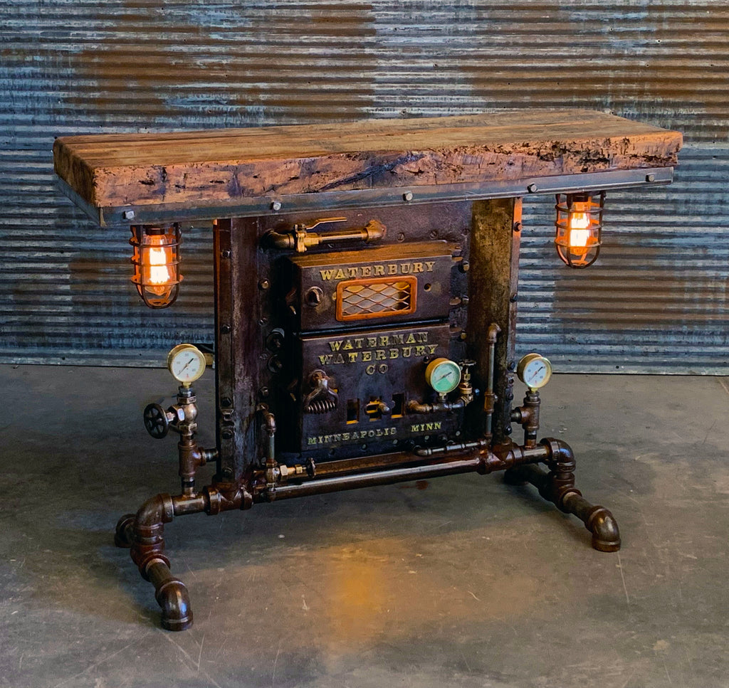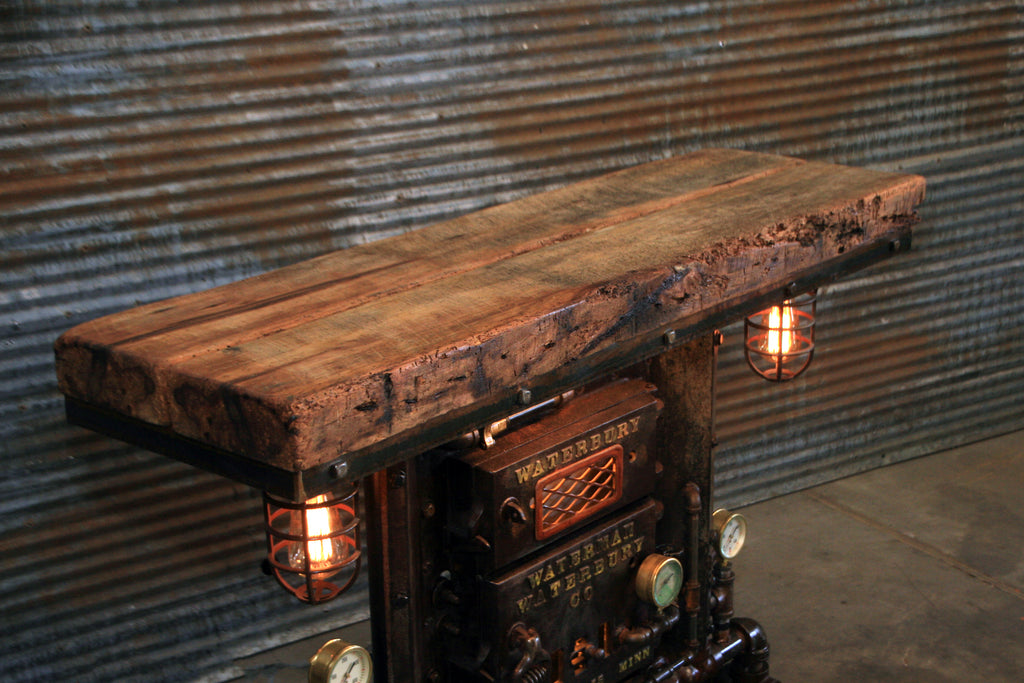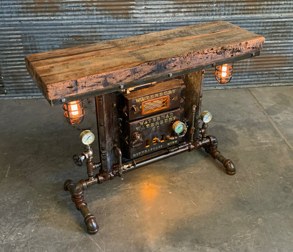 Steampunk Industrial Table / Pub, sofa console / Antique Furnace Door / Barnwood / Minneapolis / Table #2832 sold