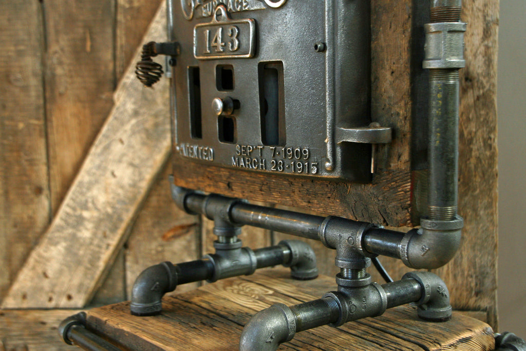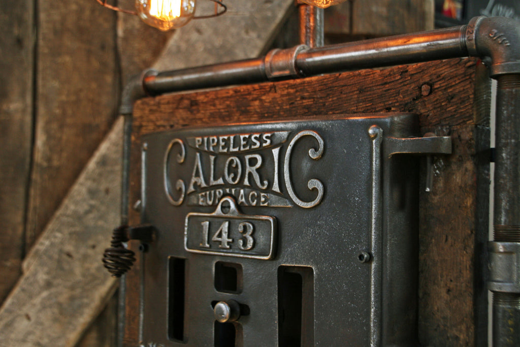 - Boiler door is mounted to a piece of Minnesota barn wood, with the square nails still visible. Square nails were used over 100 yrs ago!