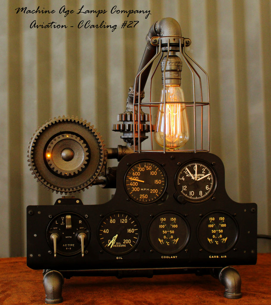 Steampunk Industrial Antique WWII P-38 Aviation Instrument Control panel Lamp (Ready to Ship) SOLD