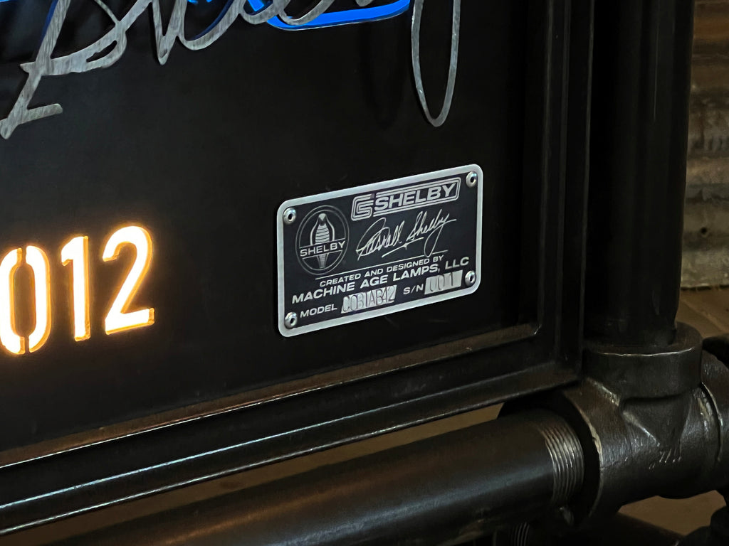 - Affixed with a nameplate with the Carroll Shelby logos and our information along with the table's model and ser number.