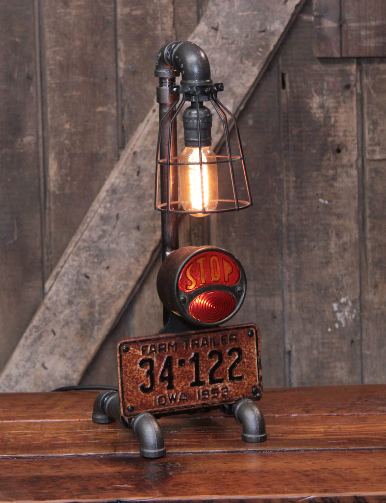Steampunk Industrial / Antique 1930's / Stop tail light / License Plate / Automotive / Hot rod / Lamp #4530
