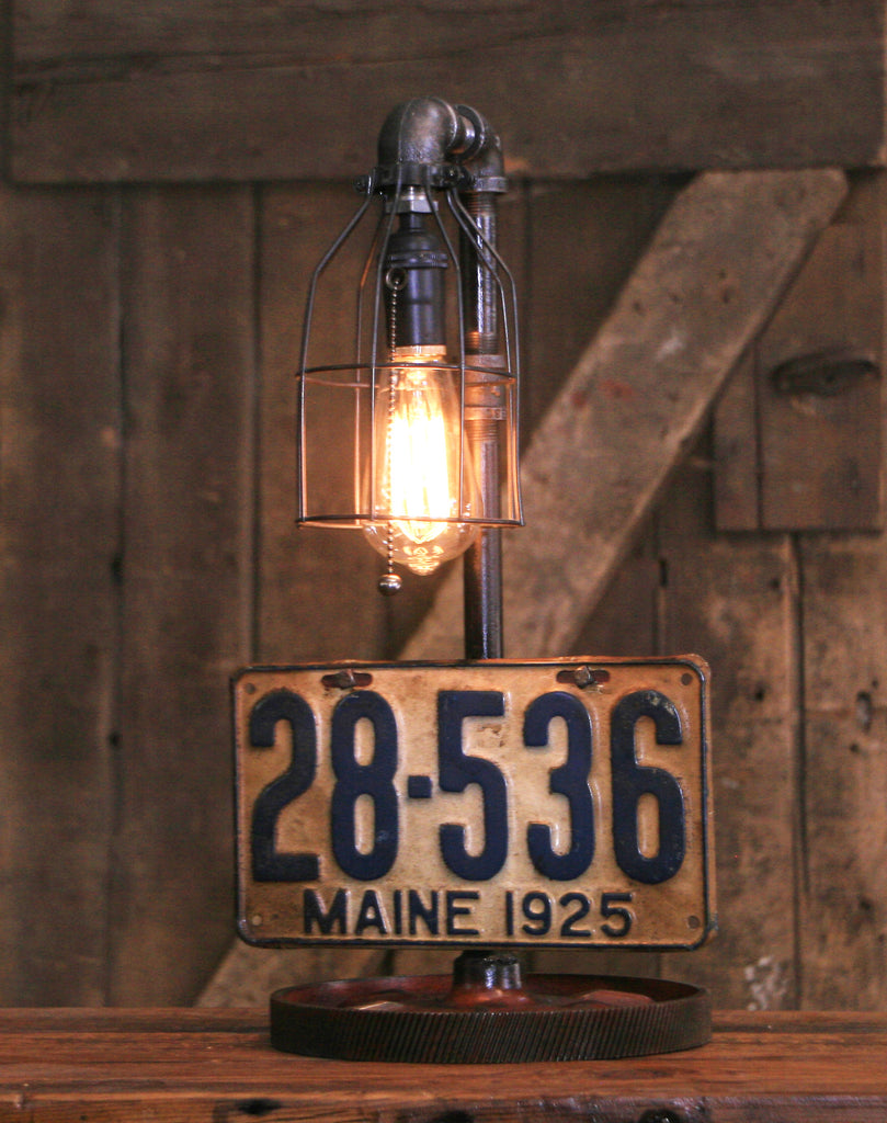 Steampunk Industrial / Antique 1925 license Plate Maine / Automotive / Lamp #3510