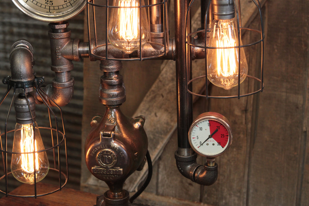 Steampunk Industrial / Steam Gauge Lamp / 6" Steam Gauge / Gear / Lamp #4399