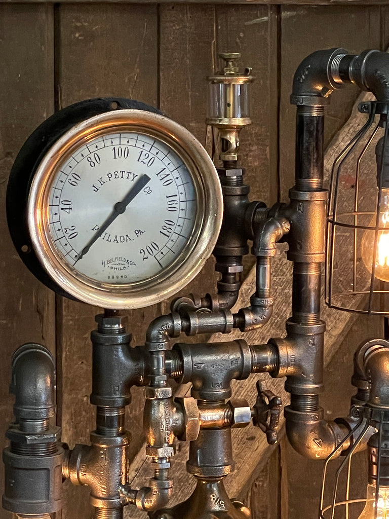 Steampunk Industrial / Steam Gauge Lamp / Gear / Oiler / Lamp #3321