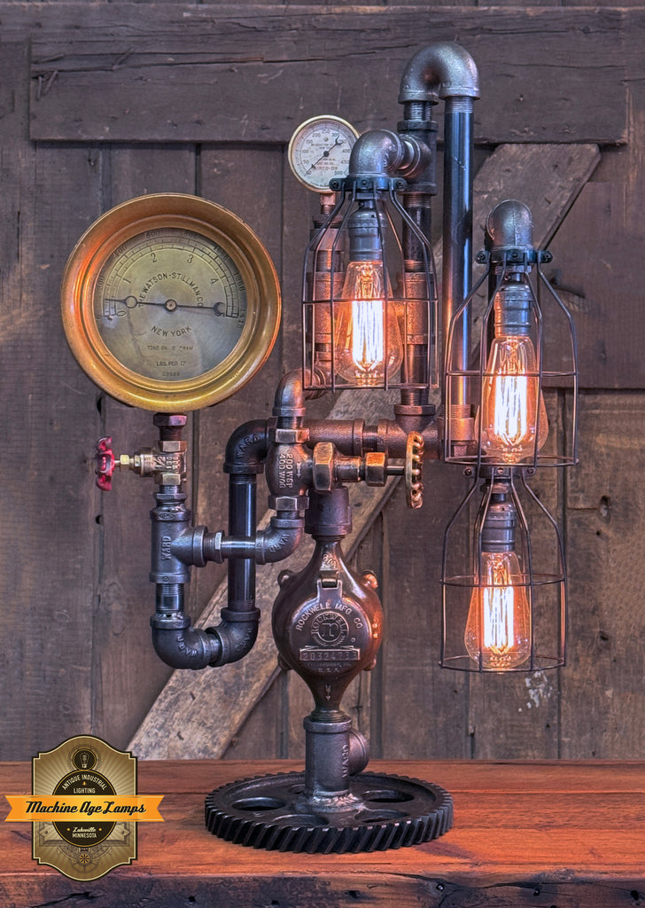 Steampunk Industrial / Steam Gauge Lamp / Watson Stillman / Lamp #5004
