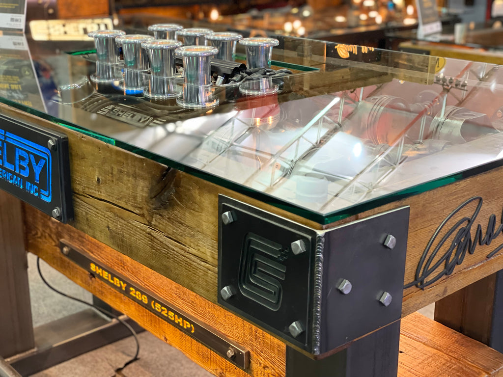 - The table comes with a certificate of authenticity as an officially licensed Carrol Shelby engine table