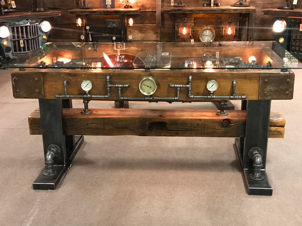 Steam punk Industrial Barnwood Steam Gauge Table / DESK / ford Shelby / Automotive / #2001