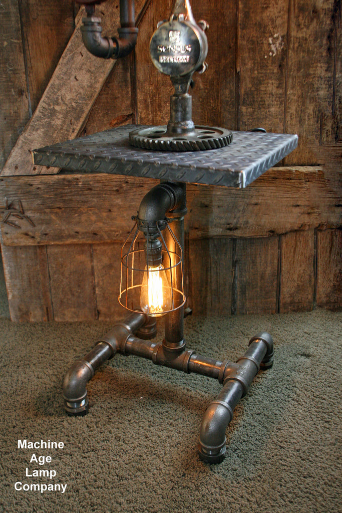 Steampunk Diamond Plate Industrial Lamp Table Stand Floor 2