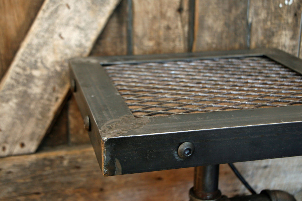 • Each table has an 8ft power cord attached to an outlet/switch mounted on the back underside of the stand, the switched outlet will power the lamp sitting on the stand and the light mounted to the front of the stand.
