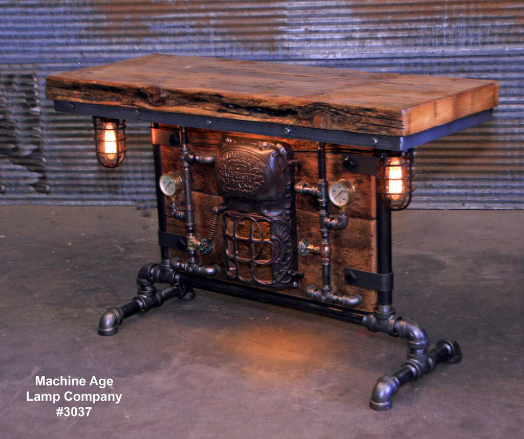 Steampunk Industrial Table / Antique Barn Wood / Furnace Door / Hallway Sofa Table #3037