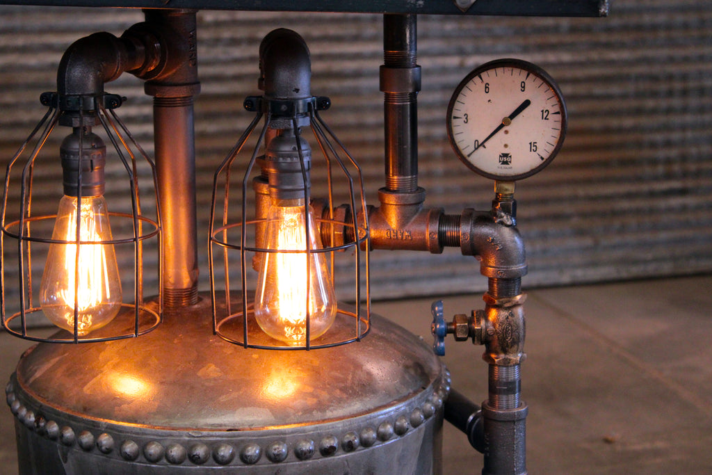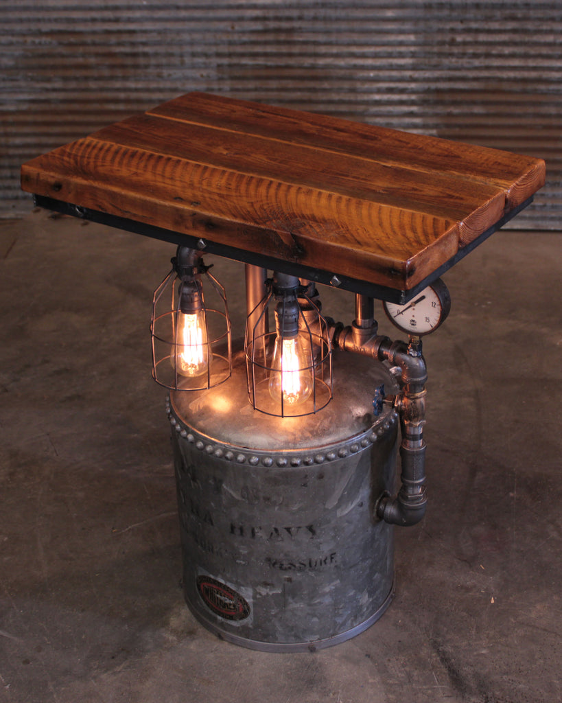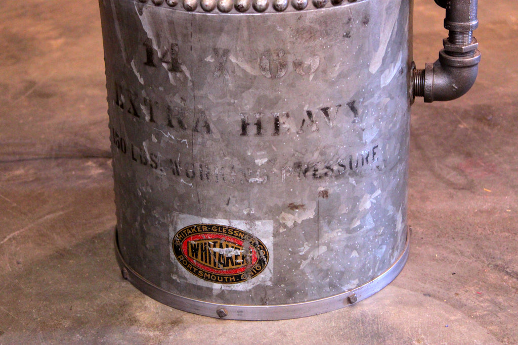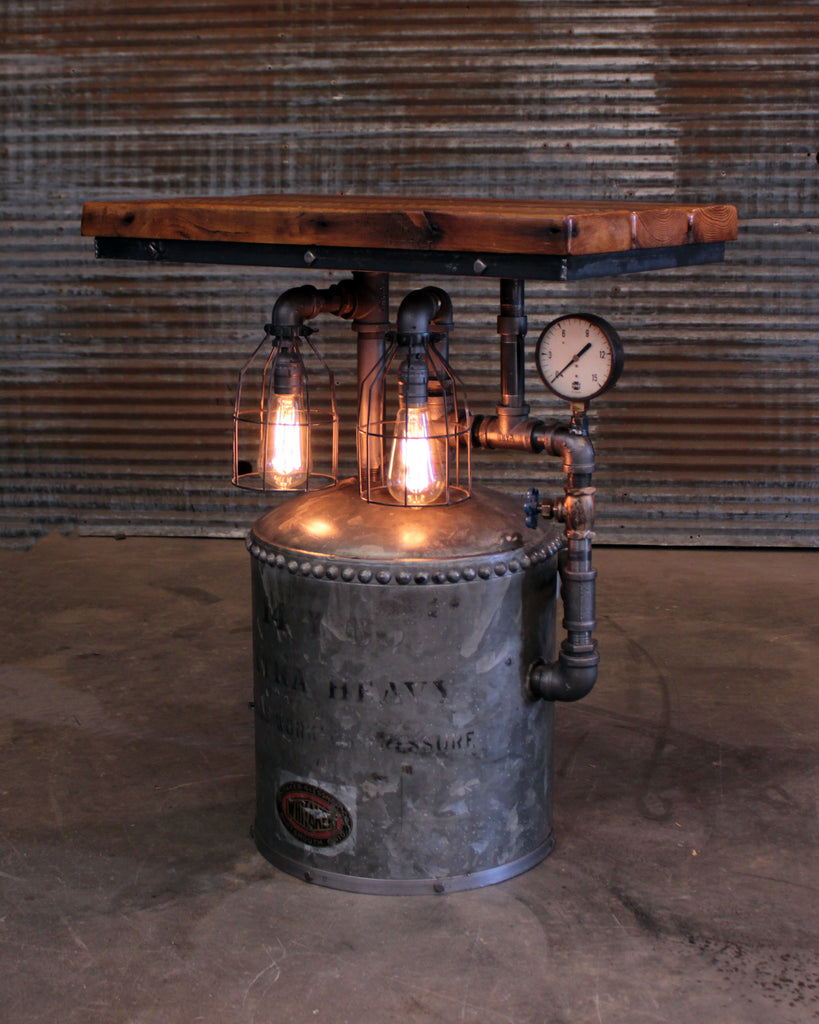 - This table features an antique water expansion tank with an original finish from the early 1950's.