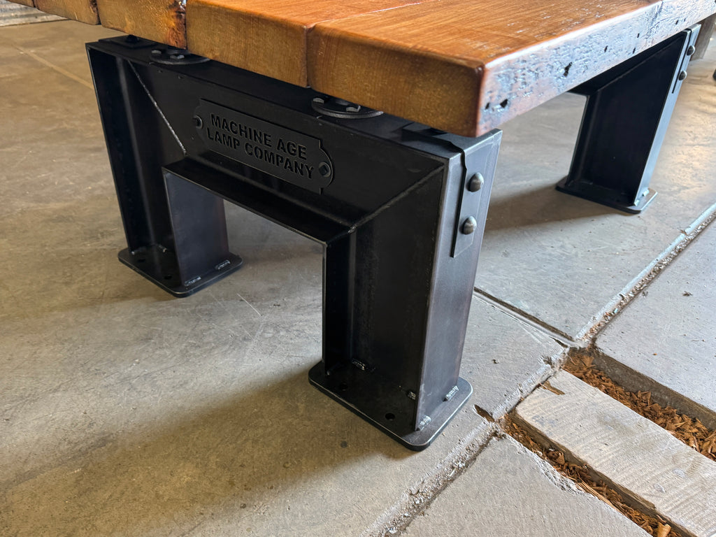 Steampunk Industrial / Clasic Iron I Beam / Barnwood Top / Table model #4281 Ser #001