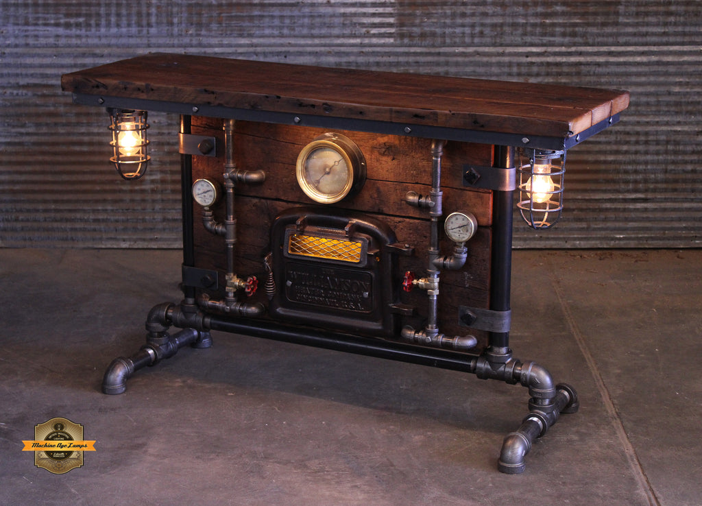 Steampunk Industrial Table / Pub, sofa console / Antique Furnace Door / New York / Barnwood / Table #4375