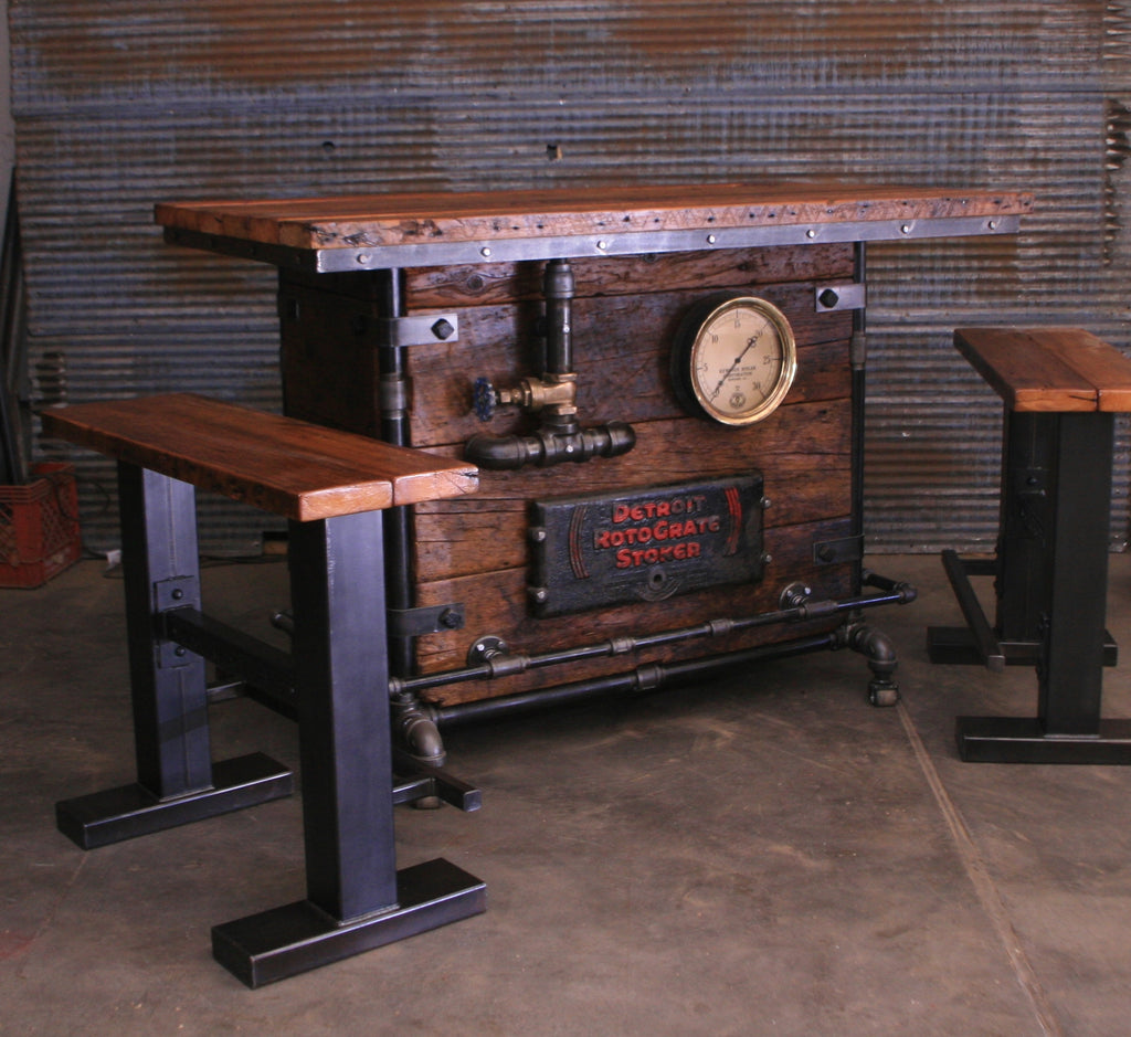 Steampunk Industrial / Iron Structure / Barnwood / Bench / Stool / Bar Rail / Bench #3712