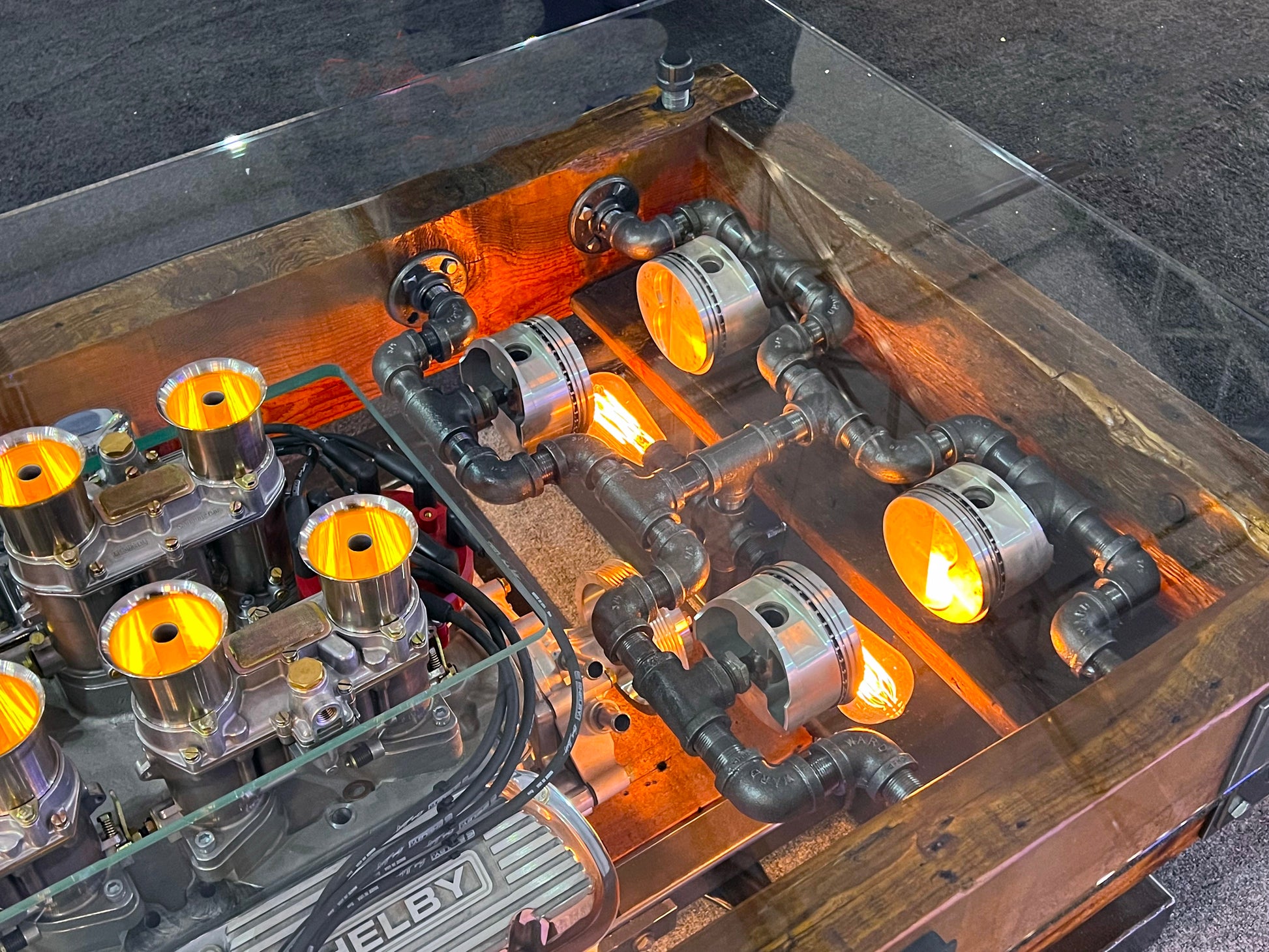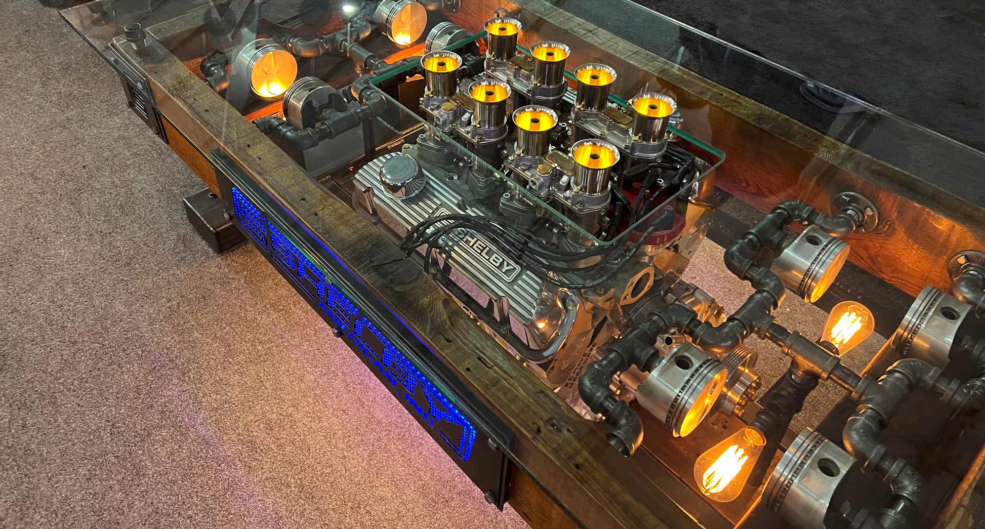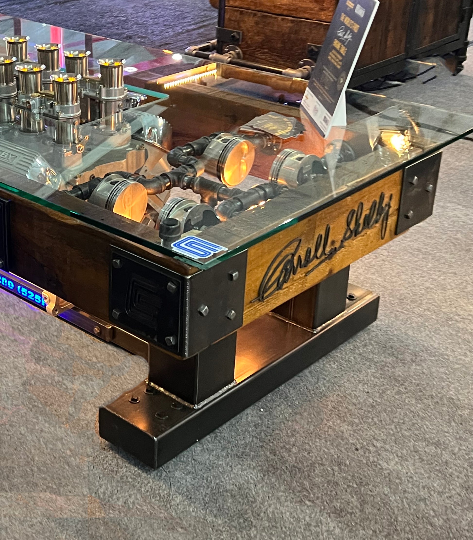 - The table comes with a certificate of authenticity as an officially licensed Carrol Shelby engine table