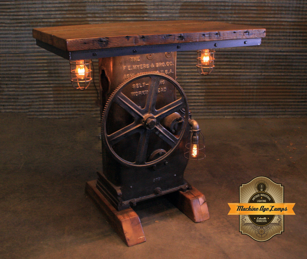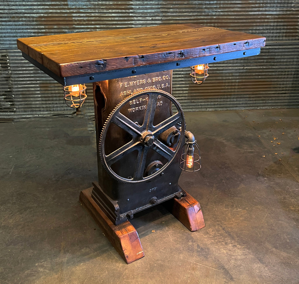 Steampunk Industrial / Antique 1930's Pump Myers Ohio / Barn Wood / table #6006 sold