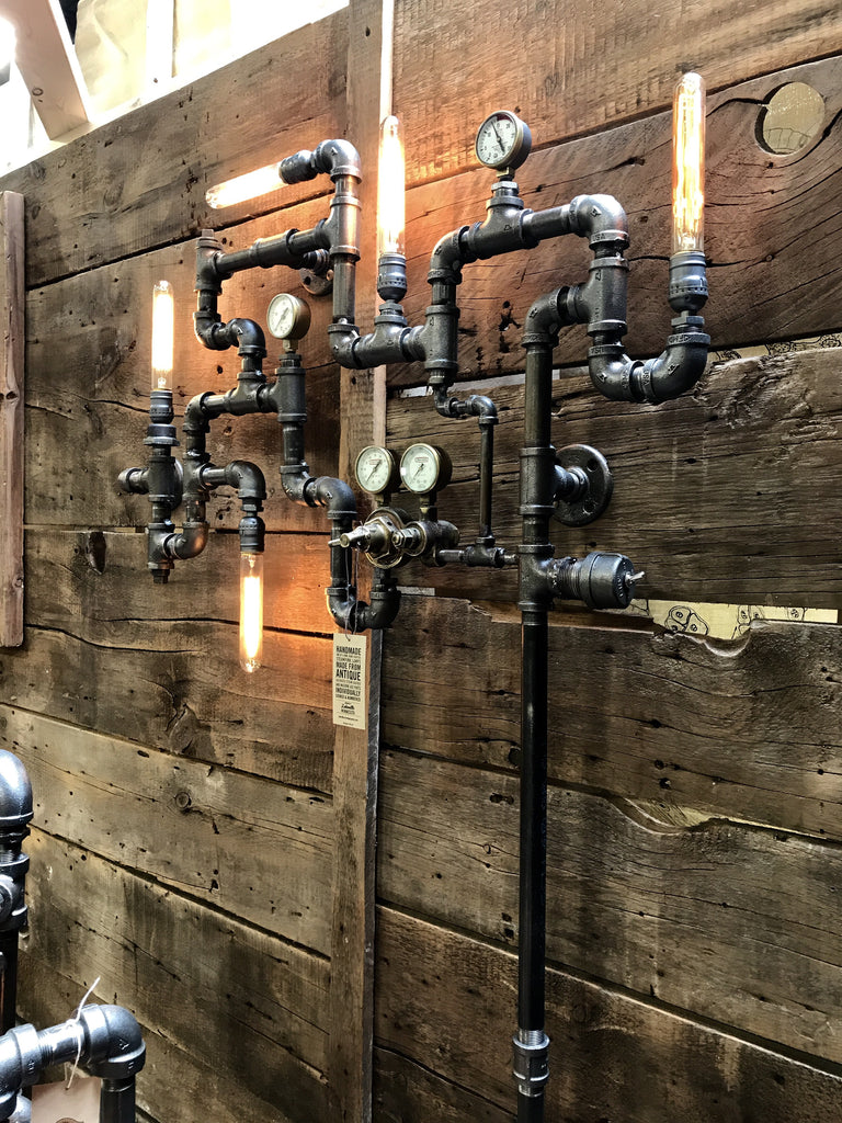 Steampunk Industrial Pipe Wall Art Light Sconce