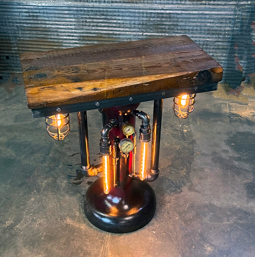 Steampunk Industrial Table / Antique Cream Separator Base / Barnwood / Hostess Stand / Table #4060