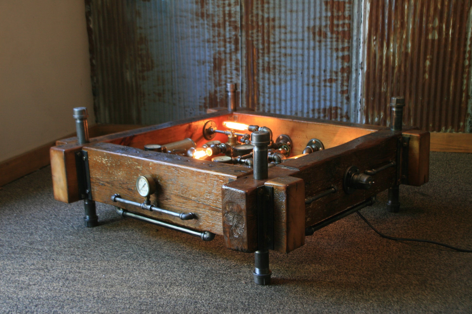 Steampunk Industrial Table / Coffee / Barn Wood / Gauges / Table #1513