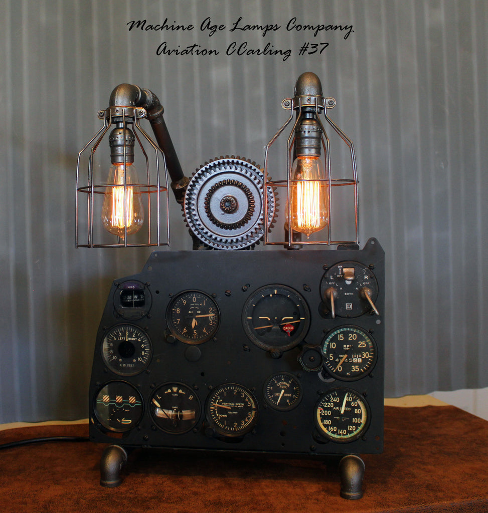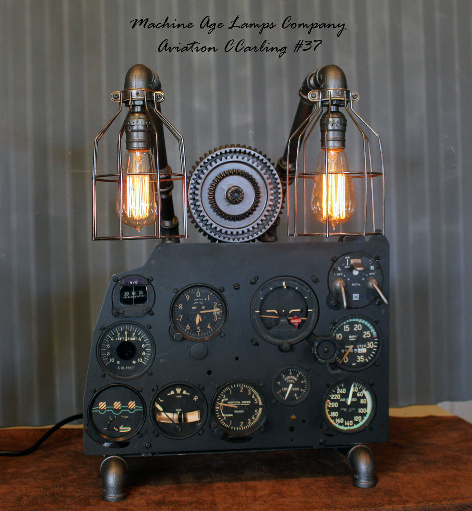 - Aircraft gears used on this lamp were salvaged from various old aircraft and repurposed to complement this lamps machine age look.